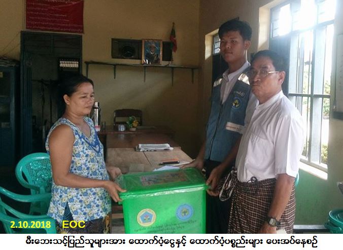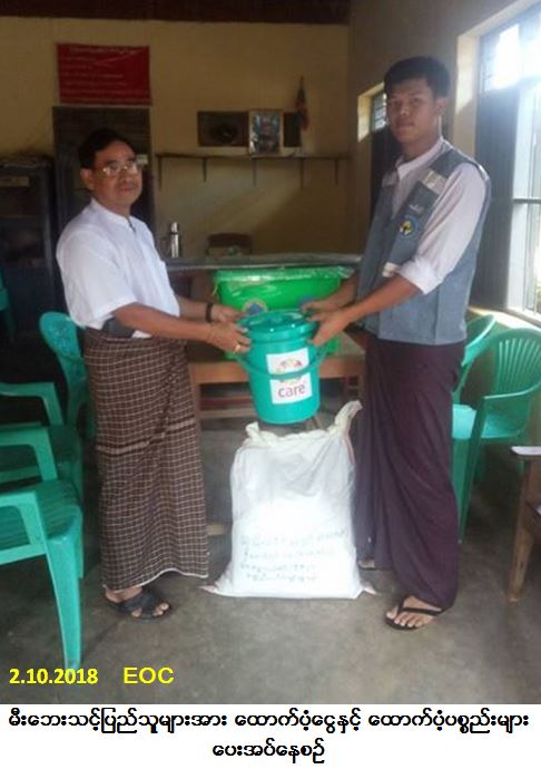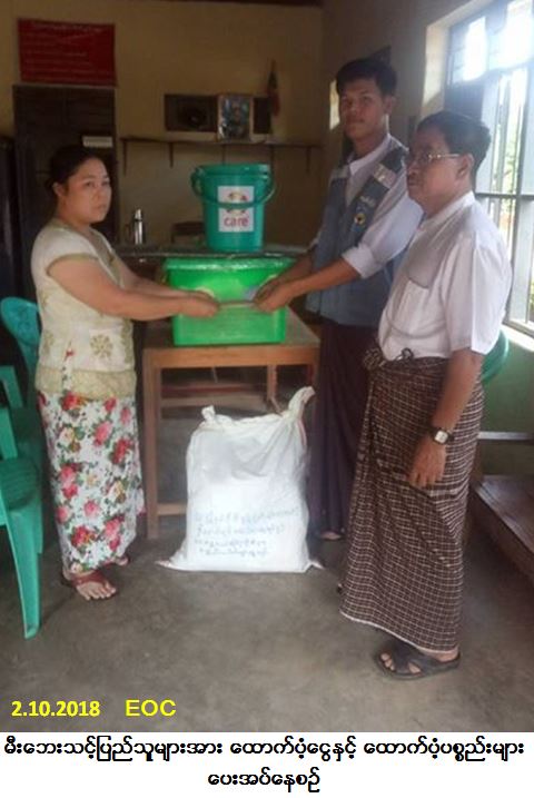 လူမှုဝန်ထမ်း၊ ကယ်ဆယ်ရေးနှင့် ပြန်လည်နေရာချထားရေးဝန်ကြီးဌာန၊ ဘေးအန္တရာယ်ဆိုင်ရာ စီမံခန့်ခွဲ မှုဦးစီးဌာန၊ ရေးမြို့နယ်ဦးစီးမှူးရုံးမှ တာဝန်ရှိသူများသည် မွန်ပြည်နယ်၊ ရေးမြို့နယ်၊ မော့ကနင်ကျေးရွာ၌ (၃၀-၉-၂၀၁၈) ရက်နေ့တွင် ဖြစ်ပွားခဲ့သော မီးလောင်ကျွမ်းမှုကြောင့် ပျက်စီးဆုံးရှုံးခဲ့သည့် နေအိမ် (၂) လုံးအတွက် အိမ်ဆောက် ပစ္စည်းဖိုးထောက်ပံ့ငွေ (၄၀၀,၀၀၀/-) ကျပ်၊ ဘေးသင့်လူဦးရေ (၉) ဦးအတွက် ဆန်ရိက္ခာ (၇) ရက်စာဖိုး (၁၈,၉၀၀/-) ကျပ်၊ စုစုပေါင်းထောက်ပံ့ငွေ (၄၁၈,၉၀၀/-) ကျပ်နှင့် ကယ်ဆယ်ရေးပစ္စည်း (၁၆) မျိုးပါ (၂) အိမ်ထောင်စာ၊ family kit (၂) ထုပ်၊ ရေပုံး (၄) ပုံးတို့အား ( ၂-၁၀-၂၀၁၈) ရက်နေ့တွင် ဘေးသင့်ပြည်သူများထံသို့ သွားရောက်ထောက်ပံ့ပေးအပ်ခဲ့ကြောင်း သတင်းရရှိပါ သည်။