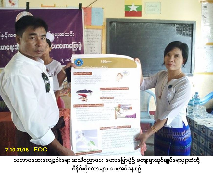 လူမှုဝန်ထမ်း၊ ကယ်ဆယ်ရေးနှင့် ပြန်လည်နေရာချထားရေးဝန်ကြီးဌာန၊ ဘေးအန္တရာယ်ဆိုင်ရာ စီမံခန့်ခွဲ မှုဦးစီးဌာန၊ လပွတ္တာခရိုင်ဦးစီးမှူးရုံးမှတာဝန်ရှိသူများသည် လပွတ္တာမြို့နယ် ၊ ရေဆိုင်ကျေးရွာအုပ်စု၊ ကန့်ကော်ကုန်းကျေးရွာ၌ (၇-၁၀-၂၀၁၈) ရက်နေ့၊ နံနက် (၀၈း၃၀) နာရီအချိန်မှ (၁၀း၀၀) နာရီအချိန်ထိ သဘာဝဘေးလျော့ပါးရေး အသိပညာပေးဟောပြောပွဲ ကျင်းပပြုလုပ်ခဲ့ရာ ကျေးရွာသူ/သား (၁၀၀) ဦးတက်ရောက်ခဲ့ပြီး တက်ရောက် လာသူများအား ဘေးရှစ်မျိုးပါ လက်ကမ်းစာစောင်များဖြန်ဝေခြင်းနှင့် ကျေးရွာအုပ်ချုပ်ရေးမှူးထံသို့ ဗီနိုင်းပိုစတာ များပေးအပ်ခဲ့ကြောင်း သတင်းရရှိပါသည်။