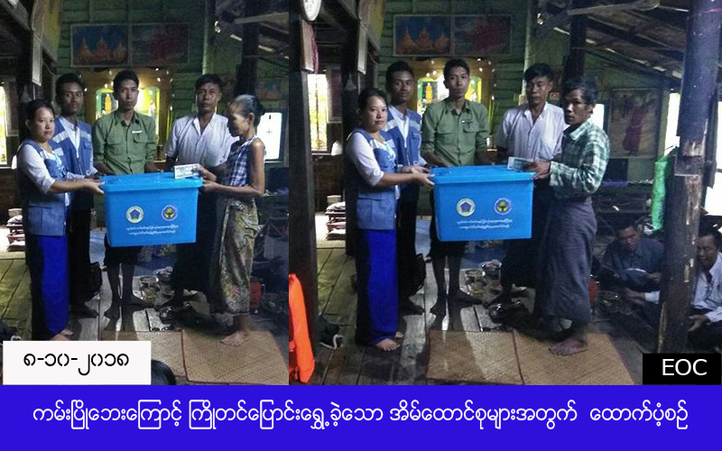လူမှုဝန်ထမ်း၊ ကယ်ဆယ်ရေးနှင့် ပြန်လည်နေရာချထားရေးဝန်ကြီးဌာန၊ ဘေးအန္တရာယ်ဆိုင်ရာစီမံခန့်ခွဲမှုဦးစီးဌာန၊ ဟင်္သာတခရိုင်ဦးစီးမှူးရုံးမှ တာဝန်ရှိသူများသည် အင်္ဂပူမြို့နယ်၊ (စစ်ကုန်း၊ သက္ကယ်ပြင်(သံ)၊ ခွေးတောက်ချောင်း) အုပ်စု၊ ကျေးရွာခွဲ(၄)ရွာတို့၌ (၂၈-၉-၂၀၁၈) နေ့မှ ( ၄-၁၀-၂၀၁၈) နေ့ထိ ဖြစ်ပွားခဲ့သော ကမ်းပြိုဘေးကြောင့် ကြိုတင်ဖျက်သိမ်းပြောင်းရွှေ့ရသော အိမ်ခြေ(၄၇)လုံး၊ ၎င်းအိမ်ထောင်စု (၄၇) စုရှိ လူဦးရေ (၁၉၀) ဦးတို့အတွက် ကယ်ဆယ်ရေးပစ္စည်း (၁၀)မျိုး (၄၇)အိမ်ထောင်စာ၊ အိမ်ဆောက်ပစ္စည်းဖိုး (၄၇၀၀၀၀၀) ကျပ်၊ ဆန်ရိက္ခာဖိုး (၃၉၉၀၀၀) ကျပ်၊ စုစုပေါင်းကယ်ဆယ်ရေးရန်ပုံငွေ (၅၀၉၉၀၀၀) ကျပ်ကို (၈-၁၀-၂၀၁၈) ရက်နေ့တွင် အင်္ဂပူမြို့နယ်၊ အထွေထွေအုပ်ချုပ်ရေးဦးစီးဌာနမှ တာဝန်ရှိသူများနှင့်အတူ ဘေးသင့်ပြည်သူများ လက်ဝယ်သို့အရောက် ထောက်ပံ့ပေးအပ်ခဲ့ကြောင်း သိရှိရပါသည်။