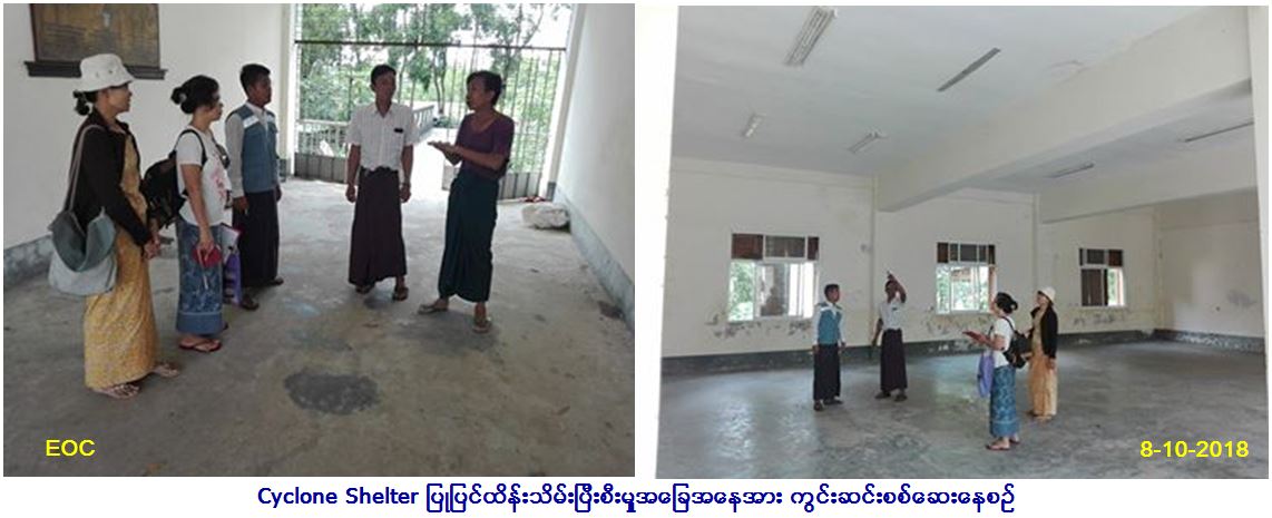 လူမှုဝန်ထမ်း၊ ကယ်ဆယ်ရေးနှင့်ပြန်လည်နေရာ ချထားရေးဝန်ကြီးဌာန၊ ဘေးအန္တရာယ်ဆိုင်ရာစီမံ ခန့်ခွဲမှုဦးစီးဌာန၊ ဘိုကလေးမြို့နယ်ဦးစီးမှူးရုံး မှ တာဝန်ရှိသူများသည် မြို့နယ်စာရင်းစစ်အဖွဲ့တို့နှင့် အတူ (၉.၁၀.၂၀၁၈)ရက်နေ့တွင် ဘိုကလေးမြို့နယ်၊ ကဒုံကနိကျေးရွာအုပ်စု၊ ကဒုံကနိ အမှတ်(၁)ရပ်ကွက် အတွင်းရှိ Shelter ပြုပြင်ထိန်းသိမ်းပြီးစီးမှုအခြေ အနေအား ကွင်းဆင်းစစ်ဆေးမှုများ ဆောင်ရွက် ခဲ့ကြောင်း သတင်းရရှိပါသည်။