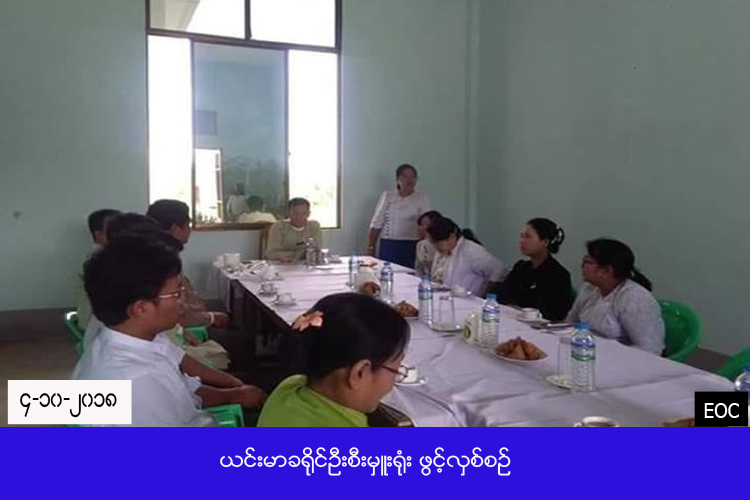 လူမှုဝန်ထမ်း၊ ကယ်ဆယ်ရေးနှင့် ပြန်လည်နေရာချထားရေးဝန်ကြီးဌာန၊ ဘေးအန္တရာယ်ဆိုင်ရာစီမံခန့်ခွဲမှုဦးစီးဌာန၊ စစ်ကိုင်းတိုင်းဒေသကြီးဦးစီးမှူးရုံးမှ တာဝန်ရှိသူများသည် (၄-၁၀-၂၀၁၈) ရက်နေ့တွင် ယင်းမာပင်မြို့၊ (ခ) ရပ်ကွက်၊ ပုလဲ-ဂန့်ဂေါလမ်းအရှေ့ဘက်၊ ခရိုင်စုပေါင်းရုံး၌ ယင်းမာခရိုင်ဘေးအန္တရာယ်ဆိုင်ရာစီမံခန့်ခွဲမှုဦးစီးမှူးရုံးအား ဖွင့်လှစ်ခဲ့ရာ ယင်းမာပင်ခရိုင်အုပ်ချုပ်ရေးမှူး၊ မြို့နယ်အုပ်ချုပ်ရေးမှူးနှင့်တကွ ဖိတ်ကြားထားသော ဌာနဆိုင်ရာများ တက်ရောက်ခဲ့ကြကြောင်း သိရှိရပါသည်။