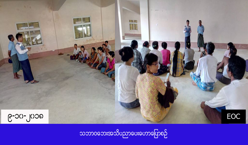 လူမှုဝန်ထမ်း၊ ကယ်ဆယ်ရေးနှင့် ပြန်လည်နေရာချထားရေးဝန်ကြီးဌာန၊ ဘေးအန္တရာယ်ဆိုင်ရာစီမံခန့်ခွဲမှုဦးစီးဌာန၊ ဘိုကလေးမြို့နယ်ဦးစီးမှူးရုံးမှ တာဝန်ရှိသူများသည် (၉-၁၀-၂၀၁၈) ရက်နေ့တွင် ဘိုကလေးမြို့နယ်၊ ဧရာကျေးရွာအုပ်စု၊ တောက်တာကုန်းကျေးရွာရှိ Cyclone Shelter တွင် လိုအပ်သော ပြုပြင်ထိန်းသိမ်းမှုများ ဆောင်ရွက်ပြီးစီးပြီဖြစ်သည့်အတွက် မြို့နယ်စာရင်းစစ်အဖွဲ့မှ ကွင်းဆင်းစစ်ဆေးမှုများပြုလုပ်ခဲ့ရာ လိုက်ပါဆောင်ရွက်ခဲ့ပြီး အဆိုပါ Cyclone Shelter တွင် သဘာဝဘေးအန္တရာယ်ဆိုင်ရာအသိပညာပေးဟောပြောပွဲကို ကျင်းပပြုလုပ်ခဲ့ရာ ကျေးရွာအုပ်စုအုပ်ချုပ်ရေးမှူးနှင့် ရာအိမ်မှူးများ၊ ကျေးရွာသူ/သားများ စုစုပေါင်းအင်အား (၃၀) ဦးခန့် တက်ရောက်ခဲ့ကြောင်း သိရှိရပါသည်။