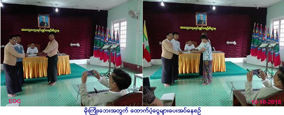 လူမှုဝန်ထမ်း၊ ကယ်ဆယ်ရေးနှင့်ပြန်လည်နေရာချ ထားရေးဝန်ကြီးဌာန၊ ဘေးအန္တရာယ်ဆိုင်ရာစီမံခန့်ခွဲ မှုဦးစီးဌာန၊ ဘိုကလေးမြို့နယ်ဦးစီးမှူးရုံး မှ တာဝန်ရှိသူများသည် (၁၀.၁၀.၂၀၁၈)ရက်နေ့ ဘိုကလေးမြို့နယ်၊ အထွေထွေအုပ်ချုပ်ရေးဦးစီးဌာန၊ အစည်းဝေးခန်းမတွင် (၇.၁၀.၂၀၁၈) ရက်နေ့၊ ပျဉ်းမကုန်းကျေးရွာအုပ်စု၊ ကဇန်းဒေါင့်ကျေးရွာ၊ ကဇန်းဒေါင့်မြစ်အတွင်း ငါးဖမ်းပိုက်မျောနေစဉ် မိုးကြိုးပစ်ခံရ၍ သေဆုံးခဲ့သော ဇနီးမောင်နှံ (၂)ဦးအတွက် တစ်ဦးလျှင်ထောက်ပံ့ငွေ (၃၀၀၀၀ဝ/-)နှုန်းဖြင့် (၂)ဦးအတွက် (၆၀၀၀၀ဝ/-)ကျပ် ကို လွှတ်တော်ကိုယ်စား လှယ်များ၊ မြို့နယ် အုပ်ချုပ်ရေးမှူး၊ ဌာနဆိုင်ရာအကြီးအကဲ များရှေ့မှောက်တွင် သေဆုံးသူ၏ မိဘများလက်ဝယ်သို့ ထောက်ပံ့ပေးအပ်ခဲ့ပြီး၊ အစည်းအဝေးအခမ်းအနားသို့ တက်ရောက်လာသူ (၅၀)ဦးခန့်အား မိုးကြိုးဘေးနှင့်စပ်လျဉ်းသည့် ဆောင်ရန်/ရှောင်ရန်များ ဆွေးနွေး ဟောပြောခဲ့ကြောင်း သတင်းရရှိပါသည်။