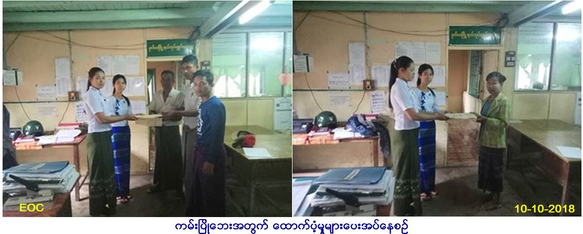 လူမှုဝန်ထမ်း၊ ကယ်ဆယ်ရေးနှင့်ပြန်လည်နေရာချ ထားရေးဝန်ကြီးဌာန၊ ဘေးအန္တရာယ်ဆိုင်ရာစီမံ ခန့်ခွဲမှုဦးစီးဌာန၊ ပန်းတောင်းမြို့နယ်ဦးစီးမှူး ရုံးမှ တာဝန်ရှိသူများသည် ဧရာဝတီမြစ်ကမ်းပါးပြိုကျ မှုကြောင့် (၃၀.၉.၂၀၁၈)ရက်နေ့တွင် ကျွန်းမီးအုပ်စု၊ ကျွန်းမီးကျေးရွာ၌ ကမ်းပြိုဘေးကြို တင်ရွှေ့ပြောင်းနေအိမ်(၁)လုံး၊ (၁.၁၀.၂၀၁၈)ရက်နေ့ တွင် ကျွန်းမီးအုပ်စု၊ ရွှေတောင်စုကျေးရွာ၌ ကမ်းပြိုဘေးကြိုတင်ရွှေ့ပြောင်းနေအိမ် (၄)လုံး၊ (၅.၁၀.၂၀၁၈)ရက်နေ့တွင် ကျွန်းမီးအုပ်စု၊ ရွှေတောင်စုကျေးရွာ၌ ကမ်းပြိုဘေးကြို တင်ရွှေ့ပြောင်းနေအိမ်(၆)လုံး၊ စုစုပေါင်းကြိုတင် ရွှေ့ပြောင်းနေအိမ်(၁၁)လုံးအတွက် အိမ်ဆောက် ပစ္စည်းဖိုးထောက်ပံ့ငွေ (၁၁၀၀၀၀၀/-)ကျပ်တို့အား (၁၀.၁၀.၂၀၁၈)ရက်နေ့၊ နေ့လယ် (၁၃း၅၀)နာရီအချိန်တွင် ပန်းတောင်းမြို့အထွေထွေ အုပ်ချုပ်ရေးဌာနတွင် ကျေးရွာပြည်သူများလက်ဝယ် သို့ထောက်ပံ့ပေးအပ်ခဲ့ကြောင်း သတင်းရရှိပါသည်။