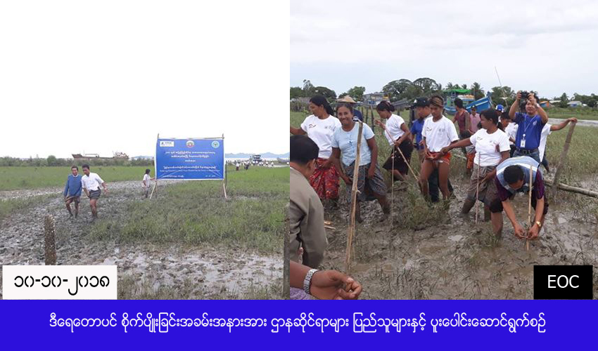 လူမှုဝန်ထမ်း၊ ကယ်ဆယ်ရေးနှင့် ပြန်လည်နေရာချထားရေးဝန်ကြီးဌာန၊ ဘေးအန္တရာယ်ဆိုင်ရာစီမံခန့်ခွဲမှုဦးစီးဌာန၊ ရခိုင်ပြည်နယ်ဦးစီးမှူးရုံးမှ တာဝန်ရှိသူများသည် (၁၀-၁၀-၂၀၁၈) ရက်နေ့၊ (၁၆း၀၀) နာရီအချိန်တွင် စစ်တွေမြို့နယ်၊ ကျေးတောပိုက်ဆိပ်ကျေးရွာ၌ အပြည်ပြည်ဆိုင်ရာသဘာဝဘေးလျော့ပါးရေးနေ့ (International Day for Disaster Reduction-IDDR) အထိမ်းအမှတ်အကြိုအဖြစ် ဒီရေတောပင် စိုက်ပျိုးခြင်းအခမ်းအနားအား NGOs၊ INGOs အဖွဲ့အစည်းများနှင့်ပူးပေါင်း၍ ဌာနဆိုင်ရာများ၊ ကျေးရွာသူ/ သား အင်အား (၁၅၀) ဦးဖြင့် ပျုးခြေထောက် သစ်ပင် (၃၀၀၀) အား စိုက်ပျိုးခဲ့ကြကြောင်း သိရှိရပါသည်။