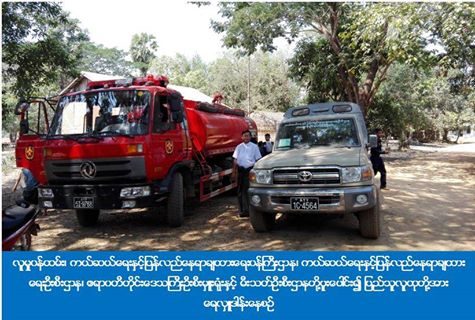 ဧရာဝတီတိုင်းဒေသကြီး၊ပုသိမ်ခရိုင်၊ပုသိမ်မြို့၊အနန်းကုန်းကျေးရွာအုပ်စု၊အနန်းကုန်းကျေးရွာနှင်သရက်ကုန်း(အရှေ့ရွာ)တို့တွင် ၁၇-၄-၂၀၁၆ ရက်နေ့၌ လူမှုဝန်ထမ်း၊ကယ်ဆယ်ရေးနှင့်ပြန်လည်နေရာချထား ရေးဝန်ကြီးဌာန၊ကယ်ဆယ်ရေးနှင့်ပြန်လည်နေရာချထားရေးဦးစီးဌာန၊ ဧရာဝတီတိုင်းဒေသကြီးဦးစီးမှူး ဦးသန်းစိုး၊ညွှန်ကြားရေးမှူးမှ ဦးဆောင်၍မီးသတ်ဦးစီးဌာနနှင့်ပူးပေါင်းပြီး မီးသတ်ကားဂါလံ(၁၆၀၀)ပါရေကား ၁ စီး၊ရေသန့် ၂၀ လီတာပါဗူး( ၅၀ )အားသောက်ရေပြတ်လပ်သည့်ကျေးရွာများအား သောက်သုံးရေဖြန့်ဝေခဲ့ပါသည်။ ဆက်လက်၍ ကြောင်ပန်းကုန်းကျေးရွာနှင့်ရေလိုအပ်သည့်ဒေသများအား ဆက်လက်ပေးပို့သွားမည်ဖြစ်ပါကြောင်းနှင့်ဖျာပုံ၊ဟင်္သာတခရိုင်ဦးစီးမှူးရုံးများမှလည်းရေပြတ်လပ်သည့်ဒေသများအားဖြန့်ဝေလျက်