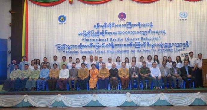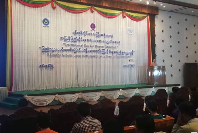 လူမှုဝန်ထမ်း၊ ကယ်ဆယ်ရေးနှင့် ပြန်လည်နေရာချထားရေးဝန်ကြီးဌာန၊ ဘေးအန္တရာယ်ဆိုင်ရာစီမံခန့်ခွဲမှုဦးစီးဌာန၊ ရန်ကုန်တိုင်းဒေသကြီးဦးစီးမှူးရုံးမှ တာဝန်ရှိသူများသည် ၂၀၁၈ခုနှစ်၊ အောက်တိုဘာလ (၁၃)ရက်နေ့တွင် ကျရောက်သည့် အပြည်ပြည်ဆိုင်ရာသဘာဝဘေးလျော့ပါးရေးနေ့အခမ်းအနားကို ရန်ကုန်တိုင်းဒေသကြီး အစိုးရအဖွဲ့ရုံး၊ မင်္ဂလာခန်းမ တွင်ကျင်းပပြုလုပ်ခဲ့ရာ ရန်ကုန်တိုင်းဒေသကြီးဝန်ကြီးချုပ်၊ ရန်ကုန်တိုင်းဒေသကြီး လွှတ်တော်ဥက္ကဌ၊ ဒုတိယဥက္ကဌ၊ ရန်ကုန်တိုင်းဒေသကြီးအစိုးရအဖွဲ့ဝင်ဝန်ကြီးများ၊ တိုင်းဒေသကြီးအဆင့် ဌာနဆိုင်ရာများ၊ သဘာဝဘေးလျော့ပါးရေး လုပ်ငန်းအဖွဲ့များ၊ လူမှုရေး အသင်းအဖွဲ့များစုစုပေါင်း(၄၀၀) ဦးခန့်တက်ရောက်ခဲ့ကြောင်း၊ အဆိုပါအခမ်းအနားဖွင့်ပွဲတွင် ရန်ကုန်တိုင်းဒေသကြီး အစိုးရအဖွဲ့ဝန်ကြီးချုပ်၊ ဦးဖြိုးမင်းသိန်းမှ အဖွင့်အမှာ စကားပြောကြားခဲ့ပြီး၊ Deputy Head of UNOCHA မှ Mr.Greg Puley ကကုလသမဂ္ဂအထွေထွေအတွင်းရေးမှူးချုပ်၏ သဝဏ်လွှာကို ဖတ်ကြားခဲ့ကြောင်း၊ ထို့နောက် ဝန်ကြီးချုပ်နှင့် ရန်ကုန်တိုင်းဒေသကြီးလွှတ်တော်ဥက္ကဌ၊ ဒုတိယဥက္ကဌ၊ရန်ကုန်တိုင်းဒေသကြီးအစိုးရ အဖွဲ့ဝင်ဝန်ကြီးများအဖွဲ့မှ ဘေးအန္တရာယ်ဆိုင်ရာစီမံခန့်ခွဲမှု ဦးစီးဌာနနှင့် သဘာဝဘေးလျော့ပါးရေးအဖွဲ့များမှ ခင်းကျင်းပြသထားသောဓါတ်ပုံပြခန်းများအားလှည့်လည်ကြည့်ရှုခဲ့ကြကြောင်း သတင်းရရှိပါသည်။