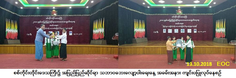 လူမှုဝန်ထမ်း၊ ကယ်ဆယ်ရေးနှင့် ပြန်လည်နေရာချထားရေးဝန်ကြီးဌာန၊ ဘေးအန္တရာယ်ဆိုင်ရာစီမံ ခန့်ခွဲ မှုဦးစီးဌာန၊ စစ်ကိုင်းတိုင်းဒေသကြီးဦးစီးမှူးရုံးမှ အောက်တိုဘာလ (၁၃) ရက်နေ့တွင် မုံရွာမြို့၊ မြို့တော်ခန်းမ၌ အပြည်ပြည်ဆိုင်ရာ သဘာဝဘေးလျော့ပါးရေးနေ့ အခမ်းအနားကျင်းပခဲ့ရာ အခမ်းအနား သို့ လူမှုရေးဝန်ကြီး လျှပ်စစ်နှင့်လမ်းပန်းဆက်သွယ်ရေးဝန်ကြီး၊ ဌာနဆိုင်ရာမှတာဝန်ရှိသူများ၊ ကျောင်းသားကျောင်းသူများနှင့် လူမှုရေးအသင်းအဖွဲ့များ၊ စုစုပေါင်း (၂၇၀) ဦးခန့်တတ်ရောက် ခဲ့ပါကြောင်း၊ အဆိုပါအခမ်းအနား၌ လူမှုရေးဝန်ကြီး က အဖွင့်အမှာစကားပြောကြားခြင်းနှင့် ဒေါ်နီနီခိုင် (Unicef Myanmar) က ကုလသမဂ္ဂအတွင်းရေးမှူးချုပ်၏ သဝဏ်လွှာအား ဖတ်ကြားတင်ပြခဲ့ပြီး အခမ်းအနားသို့ တတ်ရောက်လာသူများအား လက်ကမ်းစာစောင်များနှင့် ပိုစတာများ ဖြန့်ဝေပေးခဲ့ကာ အခမ်းအနားအပြီးတွင် လူမှုရေးဝန်ကြီးနှင့် တာဝန်ရှိသူများသည် ခန်းမအတွင်း ခင်းကျင်းပြသထားသော ပိုစတာများနှင့် စာအုပ်များအား ကြည့်ရှုလေ့လာခဲ့ကြောင်း သတင်းရရှိပါသည်။