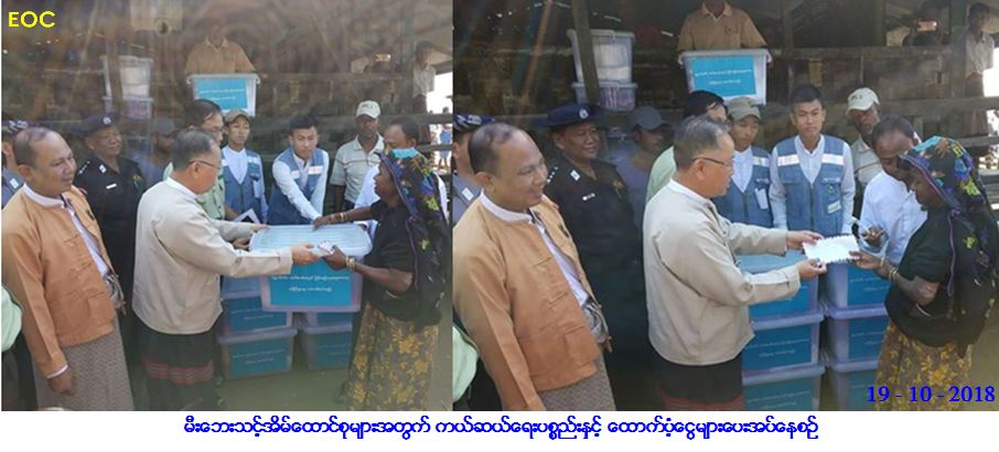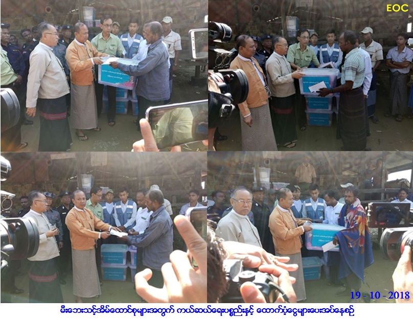 လူမှုဝန်ထမ်း၊ ကယ်ဆယ်ရေးနှင့်ပြန်လည်နေရာချထားရေးဝန်ကြီးဌာန၊ ဘေးအန္တရာယ်ဆိုင်ရာစီမံခန့်ခွဲမှုဦးစီးဌာန၊ ရခိုင်ပြည်နယ်ဦးစီးမှူးရုံးမှ တာဝန်ရှိသူများသည် စစ်တွေမြို့နယ်၊ ဆေးသမားကျွေးရွာအုပ်စု၊ အုန်းတောချေကယ်ဆယ်ရေးစခန်း၌ (၁၈-၁၀-၂၀၁၈) ရက်နေ့ (၂၃း၃၀) နာရီအချိန်တွင် (၈) ခန်းတွဲ အဆောင် (၁၅) ဆောင် မီးလောင်ကျွမ်းခဲ့ပါသည်။ အဆိုပါမီးလောင်မှုကြောင့် မီးဘေးသင့်အိမ်ထောင်စု (၁၄၁) စု၊ လူဦးရေ (၈၂၂) ဦးအတွက် ကယ်ဆယ်ရေးပစ္စည်း (၁၇) မျိုးပါ (၁၄၁) ပုံး၊ လူဦးရေ (၈၂၂) ဦးအတွက် ဆန်ရိက္ခာဖိုးငွေ (၇) ရက်စာ (၁,၇၂၆,၂၀၀/-) ကျပ်နှင့် သေဆုံးသူ ကျား (၁)ဦး၊ မ (၅) ဦး စုစုပေါင်း (၆) ဦးအတွက် တစ်ဦးလျှင် (၃၀၀,၀၀၀/-) ကျပ်နှုန်းဖြင့် စုစုပေါင်း ထောက်ပံ့ငွေ (၁,၈၀၀,၀၀၀/-)ကျပ်တို့အား (၁၉ – ၁၀ – ၂၀၁၈) ရက်နေ့တွင် ဘေးသင့်သူများ လက်ဝယ်အရောက် သွားရောက်ထောက်ပံ့ပေးအပ်ခဲ့ကြောင်း သတင်းရရှိပါသည်။
