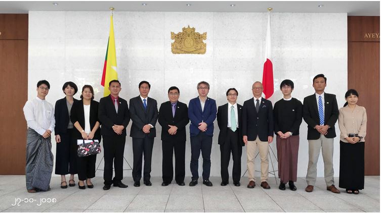 ဂျပန်နိုင်ငံတွင် ရောက်ရှိနေသော လူမှုဝန်ထမ်း၊ ကယ်ဆယ်ရေးနှင့် ပြည်လည်နေရာချထားရေးဝန်ကြီးဌာန၊ ပြည်ထောင်စုဝန်ကြီး ဒေါက်တာဝင်းမြတ်အေးသည် ယနေ့နံနက်ပိုင်းတွင် ဂျပန်နိုင်ငံ ဆိုင်ရာ မြန်မာသံရုံးသို့ ရောက်ရှိပြီး သံရုံးအစည်းအဝေးခန်းမ၌ သံအမတ်ကြီးက မြန်မာသံရုံး၏ ဂျပန်နိုင်ငံတွင် အကောင်အထည်ဖော်ဆောင်ရွက်လျက် ရှိသော လုပ်ငန်း ဆောင်ရွက်နေမှု အခြေအနေများအား ရှင်းလင်းတင်ပြခဲ့ပါသည်။ ထို့နောက် ပြည်ထောင်စုဝန်ကြီးသည် မြန်မာနိုင်ငံ၏ ဂုဏ်ထူးဆောင် ကောင်စစ်ဝန် မစ္စတာ တာရှီအိုနာရှီမူရာအား လက်ခံတွေ့ဆုံရာတွင် နှစ်နိုင်ငံအကြား ချစ်ကြည်ရင်းနှီးမှုတိုးမြှင့် တည်ဆောက်ရေး ကိစ္စရပ်များ၊ ဘေးအန္တရာယ်စီမံခန့်ခွဲမှုလုပ်ငန်းများတွင် ဒရုန်း(Drone)များကို ဥပဒေနှင့်အညီ စနစ်တကျ အသုံးပြုနိုင်ရေး၊ မသန်စွမ်း သူများ အလုပ်အကိုင်ရရှိရေး၊ သက်ကြီးရွယ်အိုပြုစုစောင့်ရှောက် ရေးသင်တန်းများ ဖွင့်လှစ်ပို့ချ နိုင်ရေးနှင့် မူးယစ်ဆေးဖြတ်ပြီး သူများ ပြန်လည်ထူထောင်ရေးလုပ်ငန်းများတွင် ပူးပေါင်းချိတ်ဆက်ဆောင်ရွက်သွားနိုင်မည့် ကိစ္စရပ် များအား ဆွေးနွေးခဲ့ကြပါသည်။ ဆက်လက်၍ ပြည်ထောင်စုဝန်ကြီးနှင့်အဖွဲ့သည် ဂျပန်နိုင်ငံတွင် ပညာသင်ရောက်ရှိနေကြသော မြန်မာ လူငယ် များအား သံရုံးဧည့်ခန်းမ၌တွေ့ဆုံ၍ အစိုးရသစ်ကာလအတွင်း နိုင်ငံတော်က ဦးတည်ချက်များချမှတ်၍ အကောင် အထည်ဖော်ဆောင်ရွက်နေသည့်ကိစ္စရပ်များ၊ ရခိုင်ပြည်နယ် တည်ငြိမ်အေးချမ်းရေးနှင့် ဖွံ့ဖြိုးတိုးတက်ရေး ဆောင်ရွက်မှု များအား အသိပေးရှင်းလင်းပြောကြားခဲ့ပြီး တက်ရောက်လာကြသူများ၏ မေးမြန်းချက်များကို ပြန်လည်ရှင်းလင်း ဖြေကြားခဲ့ပါသည်။ မွန်းလွဲပိုင်းတွင် ပြည်ထောင်စုဝန်ကြီးနှင့်အဖွဲ့သည် Japan Heart တည်ထောင်သူ Dr. Hideto Yoshioka နှင့် အဖွဲ့အား လက်ခံတွေ့ဆုံ၍ Managing Director Mr. Yuta Momose က ဝန်ကြီးဌာနနှင့် ပူးပေါင်းဆောင်ရွက်သွားရန် ရှိသော မျက်မမြင်အနှိပ်လုပ်ငန်းဆိုင်ရာဖွံ့ဖြိုးတိုးတက်ရေးကိစ္စရပ်များအား ရှင်းလင်းတင်ပြခဲ့ပါသည်။ အဆိုပါ ဆွေးနွေးမှုများအရ မျက်မမြင် လူငယ်များအား အနှိပ်ပညာရပ်များအား စနစ်တကျ လေ့ကျင့်သင်ကြားပေး၍ ဥပဒေ၊ လုပ်ထုံး လုပ်နည်းများနှင့်အညီ ကျွမ်းကျင်မှုဆိုင်ရာ အသိအမှတ်ပြုလက်မှတ်ထုတ်ပေးရေးနှင့် လုပ်ငန်းလုပ်ကိုင် ဆောင်ရွက်ခွင့် ဖော်ဆောင်ပေးရေးကိစ္စရပ် များတွင် စီမံချက်ရေးဆွဲအကောင်အထည် ဖော်ဆောင်ရွက်သွားမည်ဖြစ်ပါ သည်။ ညနေပိုင်းတွင် ပြည်ထောင်စုဝန်ကြီးနှင့်အဖွဲ့သည် မျက်မမြင်စာ စာကြည့်တိုက်သို့သွားရောက်၍ ၎င်းတို့ ဆောင်ရွက်လျက်ရှိသော မျက်မမြင် စာအုပ်ပြုစုထုတ်လုပ်ခြင်းနှင့် အသံထွက် ဒီဂျစ်တယ် စာအုပ်များ ပြုလုပ်ထားရှိ၍ မျက်မမ