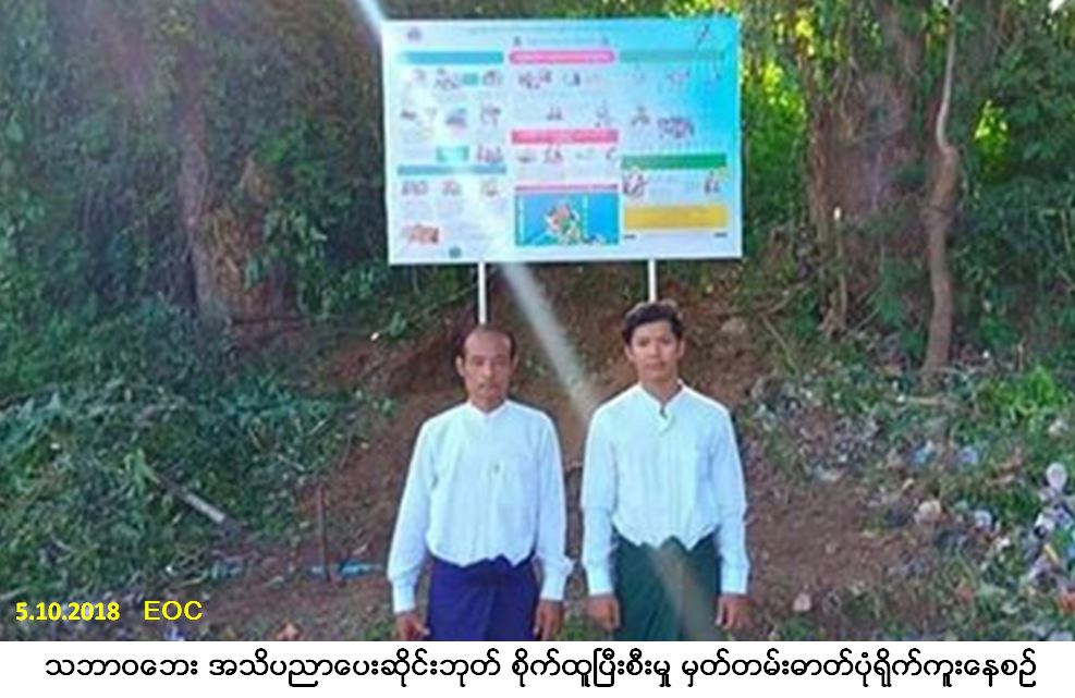 လူမှုဝန်ထမ်း၊ ကယ်ဆယ်ရေးနှင့် ပြန်လည်နေရာချထားရေးဝန်ကြီးဌာန၊ ဘေးအန္တရာယ်ဆိုင်ရာစီမံ ခန့်ခွဲမှုဦးစီးဌာန၊ ကယားပြည်နယ်ဦးစီးမှူးရုံးမှ တာဝန်ရှိသူများသည် ဖားဆောင်းမြို့၊ စုပေါင်းစစ်ဆ ေးရေးဂိတ်၊ သံလွင်တံတား (ဖားဆောင်း) အနီး၌ (၅-၁၀-၂၀၁၈) ရက်နေ့တွင် သဘာဝဘေး အသိပညာပေးဆိုင်းဘုတ် စိုက်ထူခဲ့ကြောင်း သတင်းရရှိပါသည်။
