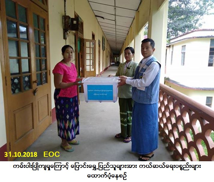 လူမှုဝန်ထမ်း၊ ကယ်ဆယ်ရေးနှင့် ပြန်လည်နေရာချထားရေးဝန်ကြီးဌာန၊ ဘေးအန္တရာယ်ဆိုင် ရာစီမံခန့်ခွဲ မှုဦးစီးဌာန၊ ဗန်းမော်ခရိုင်ဦးစီးမှူးရုံးမှ တာဝန်ရှိသူများသည် ဗန်းမော်မြို့နယ်၊ လက်ပံတန်းကျေးရွာ၌ (၂၅-၁၀-၂၀၁၈) ရက်နေ့ တွင်ဖြစ်ပွားခဲ့သော ကမ်းပါးပြိုကျမှုကြောင့် ပြောင်းရွှေ့နေအိမ် (၂) လုံး၊ အိမ်ထောင်စု (၂) စုမှ လူဦးရေ (၉) ဦး ဘေးသင့်ခဲ့ရာ အဆိုပါဘေးသင့်ပြည်သူတို့အတွက် အိမ်ဆောက်ပစ္စည်းဖိုးထောက်ပံ့ငွေ (၂၀၀,၀၀၀/-) ကျပ် (၂) အိမ်ထောင်စာ၊ ကယ်ဆယ်ရေးပစ္စည်း (၁၀) မျိုးပါ ပလပ်စတစ်ပုံး (၂) ပုံးနှင့် လူဦးရေ (၉) ဦးအတွက် (၂,၁၀၀/-) ကျပ်နှုန်းဖြင့် (၇) ရက်စာဆန်ဖိုးထောက်ပံံငွေ (၁၈,၉၀၀/-) ကျပ်တို့အား (၃၁-၁၀-၂၀၁၈) ရက်နေ့၊ နေ့လယ် (၁၁း၁၅) နာရီအချိန်တွင် သွားရောက်ထောက်ပံ့ခဲ့ကြောင်းသတင်းရရှိပါသည်။