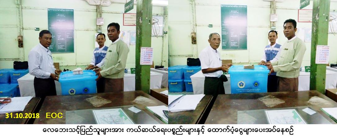 လူမှုဝန်ထမ်း၊ ကယ်ဆယ်ရေးနှင့် ပြန်လည်နေရာချထားရေးဝန်ကြီးဌာန၊ ဘေးအန္တရာယ်ဆိုင်ရာစီမံခန့်ခွဲ မှုဦးစီးဌာန၊ ပြည်ခရိုင်ဦးစီးမှူးရုံးမှ တာဝန်ရှိသူများသည် ပဲခူးတိုင်းဒေသကြီး၊ သာယာဝတီခရိုင်၊ သာယာဝတီမြို့နယ်၊ ကျေးရွာအုပ်စု (၅) စု၊ ကျေးရွာ (၁၁) ရွာတို့၌ (၂၈-၁၀-၂၀၁၈) ရက်နေ့တွင်ဖြစ်ပွားခဲ့သော လေဘေးကြောင့် ဘေးသင့်ပြိုလဲနေအိမ် (၆) လုံးအတွက် အိမ်ဆောက်ပစ္စည်းဖိုးထောက်ပံ့ငွေ (၆၀၀,၀၀၀/-) ကျပ်၊ တစ်စိတ်တစ်ပိုင်း ပျက်စီးနေအိမ် (၃၈) လုံးအတွက် တန်ဖိုးသင့်နှုန်းထားဖြင့် ထောက်ပံ့ငွေ (၂,၂၄၈,၀၀၀/-) ကျပ် ၊ အိမ်ထောင်စု (၆) စုအတွက် ကယ်ဆယ်ရေးပစ္စည်း (၉) မျိုး (ပလပ်စတစ်ပုံးပါ) (၆) အိမ်ထောင်စုစာ၊ ဘေးသင့်လူဦးရေ (၂၁) ဦးအတွက် ဆန်ရိက္ခာဖိုးထောက်ပံ့ငွေ (၇) ရက်စာ (၄၄,၁၀၀/-) ကျပ်၊ စုစုပေါင်းထောက်ပံ့ငွေ (၂,၈၉၂,၁၀၀/-) ကျပ်အား (၃၁-၁၀-၂၀၁၈) ရက်နေ့တွင် သာယာဝတီမြို့နယ် အထွေထွေအုပ်ချုပ်ရေးဦးစီးဌာနသို့ သွားရောက်ထောက်ပံ့ပေးအပ်ခဲ့ပါကြောင်း သတင်းရရှိပါသည်။