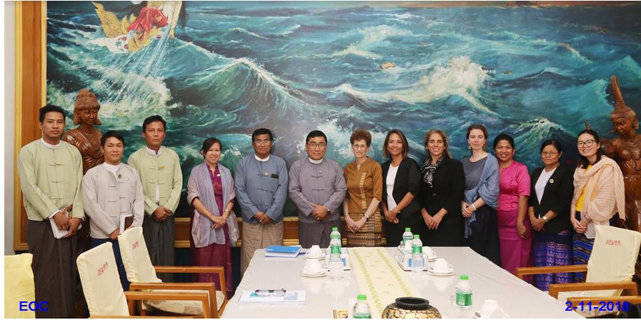 လူမှုဝန်ထမ်း၊ ကယ်ဆယ်ရေးနှင့် ပြန်လည်နေရာချ ထားရေးဝန်ကြီးဌာန ပြည်ထောင်စုဝန်ကြီး ဒေါက်တာဝင်းမြတ်အေးအား World Bankမှ Country Director(Myanmar)ဖြစ်သူ Ms.Ellen Goldsteinနှင့် ရခိုင်ပြည်နယ်ဆိုင်ရာအကြံပြုချက်များ အပေါ်အကောင်အထည်ဖေါ်ဆောင်ရွက်ရေး ကော်မတီ၏အကြံပေးအဖွဲ့၏အဖွဲ့ဝင်ဟောင်း တောင်အာဖရိကနိုင်ငံ၊ ကာကွယ်ရေးဝန်ကြီးဟောင်း Mr. Roelf Meyer တို့က ယနေ့မွန်းလွဲပိုင်းတွင် အဆိုပါ ဝန်ကြီးရုံး၊ မေခလာခန်းမတွင် သီးခြားစီလာရောက်တွေ့ဆုံခဲ့ကြပါသည်။ ထိုသို့တွေ့ဆုံရာတွင် လူမှုဝန်ထမ်း၊ ကယ်ဆယ်ရေးနှင့်ပြန်လည်နေရာချထားရေးဝန်ကြီးဌာနမှ ကမ္ဘာ့ဘဏ်အဖွဲ့၏ IDA ရန်ပုံငွေဖြင့် ဆောင်ရွက်မည့် ဧရာဝတီတိုင်းဒေသကြီးနှင့် ရှမ်းပြည်နယ်တို့ရှိ ကိုယ်ဝန်ဆောင်အမျိုးသမီးများနှင့် ၎င်းတို့မှမွေးဖွားလာသောကလေးအသက်(၂)နှစ်အထိ ငွေကြေး ထောက်ပံ့မှုအစီအစဉ်များ အကောင်အထည်ဖေါ်ဆောင်ရွက်နိုင်ရေး၊ ထိုသို့ ဆောင်ရွက်ရာတွင် လူမှုဝန်ထမ်း၊ ကယ်ဆယ်ရေးနှင့်ပြန်လည်နေရာချထား ရေးဝန်ကြီးဌာန၏ လူမှုကာကွယ် စောင့်ရှောက်ရေးစနစ်ကိုပါ ပိုမိုထိရောက် အားကောင်းအောင်ပြုလုပ်နိုင်ရေး၊ စီမံချက်ဆောင်ရွက်ရာတွင် တာဝန်ယူမှု၊ တာဝန်ခံမှုများနှင့် ပွင့်လင်းမြင်သာမှုရှိစေရေး တို့အတွက် ဆောင်ရွက်မည့် အစီအမံများနှင့် ပတ်သက်၍ ရှင်းလင်းဆွေးနွေးခဲ့ပါသည်။
