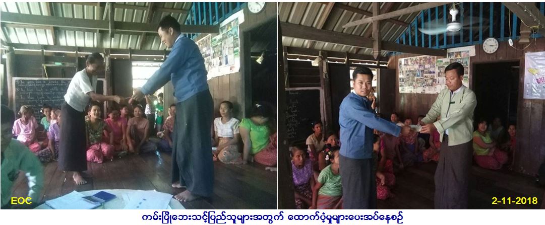လူမှုဝန်ထမ်း၊ ကယ်ဆယ်ရေးနှင့်ပြန်လည်နေရာ ချထားရေးဝန်ကြီးဌာန၊ ဘေးအန္တရာယ်ဆိုင်ရာ စီမံခန့်ခွဲမှုဦးစီးဌာန၊ ကျောက်ဖြူခရိုင်ဦးစီၤးမှူးရုံးမှ တာဝန်ရှိသူများသည် (၂.၁၁.၂၀၁၈)ရက်နေ့တွင် တောင်ကုတ်မြို့နယ်၊ နတ်မော်ကျေးရွာ၌ ၂၀၁၅-၂၀၁၆/၂၀၁၇-၂၀၁၈ခုနှစ်များတွင် ကမ်းပါးပြိုကျမှုကြောင့် အိုးအိမ်မဲ့ဖြစ်နေသူများ အတွက် အိမ်ထောင်စု(၁)စုလျှင် (၁)သိန်းနှုန်းဖြင့် အိမ်ထောင်စု(၃၁)စုအတွက် ထောက်ပံ့ငွေ (၃၁)သိန်းကျပ်အား နတ်မော်ကျေးရွာအုပ်ချုပ်ရေး မှူးရုံး၌ ပြည်သူလက်ဝယ်အရောက် သွားရောက်ထောက်ပံ့ပြီးဖြစ်ကြောင်း သတင်းရရှိပါ သည်။
