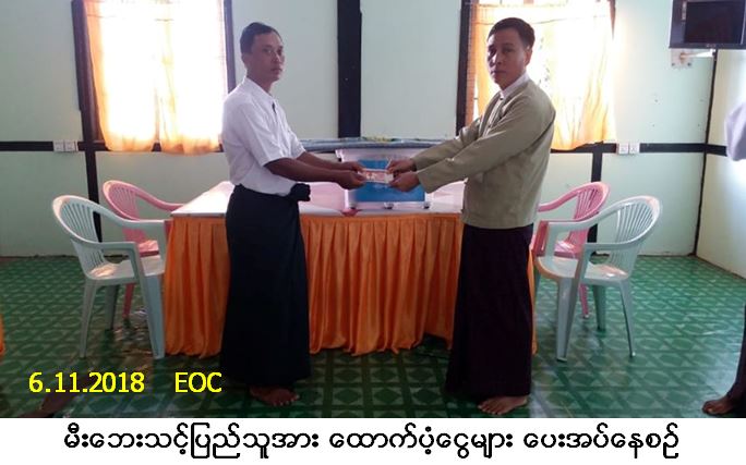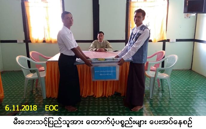 လူမှုဝန်ထမ်း၊ ကယ်ဆယ်ရေးနှင့် ပြန်လည်နေရာချထားရေးဝန်ကြီးဌာန၊ ဘေးအန္တရာယ်ဆိုင်ရာ စီမံခန့်ခွဲ မှုဦးစီးဌာန၊ မြောင်းမြခရိုင်ဦးစီးမှူးရုံးမှ တာဝန်ရှိသူများသည် မြောင်းမြမြို့နယ်၊ အပြင်လေးဘက်တွား ကျေးရွာအုပ်စု၊ သာယာကုန်းကျေးရွာ၌ (၄-၁၁-၂၀၁၈) ရက်နေ့၊ (၂၁း၀၀) နာရီအချိန်တွင် ဖြစ်ပွားခဲ့သော မီးဘေးကြောင့် နေအိမ် (၁) လုံး၊ အိမ်ထောင်စု (၁) စုမှ လူဦးရေ (၁) ဦးဘေးသင့်ခဲ့ရာ အဆိုပါ ဘေးသင့်ပြည်သူများအတွက် ကယ်ဆယ်ရေးပစ္စည်း (၁၆) မျိုး အိမ်ထောင်စု (၁) စုစာ၊ အိမ်ဆောက်ပစ္စည်းဖိုးထောက်ပံ့ငွေ (၅၀,၀၀၀/-) ကျပ် ၊ လူဦးရေ (၁) ဦးအတွက် ဆန်ရိက္ခာဖိုးထောက်ပံ့ငွေ (၂,၁၀၀/-) ကျပ်၊ စုစုပေါင်းထောက်ပံ့ငွေ (၅၂,၁၀၀/-) ကျပ် အား မြောင်းမြမြို့နယ်အထွေထွေအုပ်ချုပ်ရေး ဦးစီးဌာနခန်းမ၌ (၆-၁၁-၂၀၁၈) ရက်နေ့၊ (၁၂း၀၀) နာရီအချိန်တွင် ဒုတိယမြို့နယ်အုပ်ချုပ်ရေးမှူးနှင့်အတူ ထောက်ပံ့ပေးအပ်ခဲ့ပါကြောင်း သတင်းရရှိပါသည်။