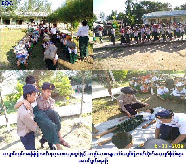 လူမှုဝန်ထမ်း၊ ကယ်ဆယ်ရေးနှင့် ပြန်လည်နေရာချထားရေးဝန်ကြီးဌာန၊ ဘေးအန္တရာယ်ဆိုင်ရာစီမံခန့့်ခွဲမှုဦးစီးဌာန၊ ဘိုကလေး မြို့နယ်ဦးစီးမှူးရုံးမှ တာဝန်ရှိသူများသည် (၆-၁၁-၂၀၁၈) ရက်နေ့၊ (၁၃း၂၀) နာရီအချိန်တွင် ဘိုကလေးမြို့နယ်၊ မလော့ကျေး ရွာအုပ်စု အ.ထ.က (ခွဲ) (မလော့) အခြေခံပညာအထက်တန်းကျောင်း (ခွဲ) တွင် သဘာဝဘေးအသိပညာပေးဟောပြောပွဲနှင့် ငလျင်သရုပ်ပြလေ့ကျင့်ခြင်းအစီအစဉ်ကို တစ်ကျောင်းလုံးအတိုင်းအတာဖြင့် ကျင်းပဆောင်ရွက်ခဲ့ရာ အခမ်းအနားတွင် မြို့နယ် မီးသတ်ဦးစီးဌာန၊ မြို့နယ်ကျန်းမားရေးဦးစီးဌာန၊ ကျေးရွာအုပ်စု အုပ်ချုပ်ရေးမှူး၊ ရပ်မိရပ်ဖများ၊ ကျောင်းအုပ်ဆရာကြီးနှင့် ဆရာ/ မများ၊ မြို့နယ်ကြက်ခြေနီသူနာပြုတပ်ဖွဲ့၊ စေတနာ့ဝန်ထမ်းလူငယ်အဖွဲ့များ၊ ကျောင်းသား/သူများ စုစုပေါင်းအင်အား (၄၅၀) ဦးခန့် ပါဝင်ဆောင်ရွက်ခဲ့ပါကြောင်း သတင်းရရှိပါသည်။