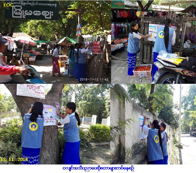 လူမှုဝန်ထမ်း၊ ကယ်ဆယ်ရေးနှင့် ပြန်လည်နေရာချထားရေးဝန်ကြီးဌာန၊ ဘေးအန္တရာယ်ဆိုင်ရာစီမံခန့်ခွဲမှုဦးစီးဌာန၊ ယင်းမာပင် ခရိုင်ဦးစီးမှူးရုံးမှ တာဝန်ရှိသူများသည် (၁၂-၁၁-၂၀၁၈) ရက်နေ့တွင် ပြည်သူများအား ငလျင်ဘေးအန္တရာယ်နှင့်ပတ်သက်၍ အသိပညာဗဟုသုတများတိုးပွားလာစေရန် ရည်ရွယ်လျက် ငလျင်အသိပညာပေးပိုစတာများအား ယင်းမာပင် မြို့မဈေး၊ ပုလဲ-ဂန့်ဂေါ ကားလမ်းမဘေးရှိ ဝဲ/ယာ သစ်ပင်များ၊ ဆေးရုံ၊ ကားဂိတ်၊ ထွေ/အုပ်နှင့် ပြန်/ဆက်ရုံးများတွင် သွားရောက်ကပ်ခဲ့ပြီး ကျောင်း သား/သူများ ငလျင်ဘေးအန္တရာယ်နှင့်ပတ်သက်၍ ကြိုတင်ပြင်ဆင်မှုများ၊ ဆောင်ရန်/ရှောင်ရန်များသိရှိနိုင်စေရန် ငလျင်ဘေး ပိုစတာ အစောင်ရေ (၅၀) အား ယင်းမာပင်မြို့နယ်ပညာရေးမှူးရုံးမှတဆင့် လွှဲပြောင်းပေးအပ်ခဲ့ကြောင်း သတင်းရရှိပါသည်။