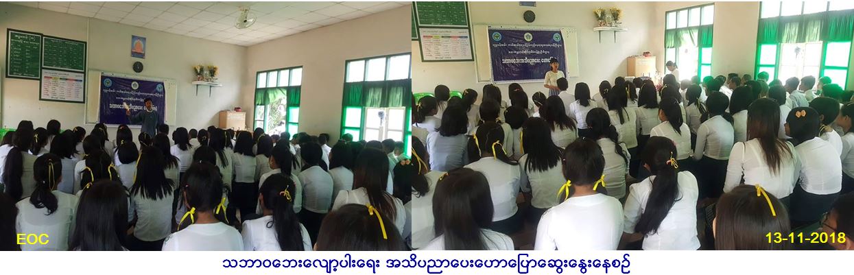 လူမှုဝန်ထမ်း၊ ကယ်ဆယ်ရေးနှင့် ပြန်လည်နေရာချ ထားရေးဝန်ကြီးဌာန၊ ဘေးအန္တရာယ်ဆိုင်ရာစီမံခန့်ခွဲမှုဦးစီးဌာန၊ တနင်္သာရီတိုင်းဒေသကြီးဦးစီးမှူး ရုံးမှ တာဝန်ရှိသူများသည် (၁၃-၁၁-၂၀၁၈)ရက်နေ့၊ နံနက်(၁၀:၀၀)အချိန်တွင် လောင်းလုံးမြို့နယ်၊ ပန်းတင်အင်းကျေးရွာရှိ အ.ထ. က ငပိ တက်ကြီးကျောင်း၌ ပြည်သူ(၂၀၀)ဦးအား သဘာဝဘေးလျော့ပါးရေး အသိပညာပေးဟောပြော ပွဲပြုလုပ်ခဲ့ပြီး တာဝန်ရှိသူထံသို့ သဘာဝဘေး အသိပညာပေးလက်ကမ်းစာစောင်များနှင့် ဗွီနိုင်းပိုစတာများပေးအပ်ခဲ့ကြောင်း သတင်း ရရှိပါသည်။