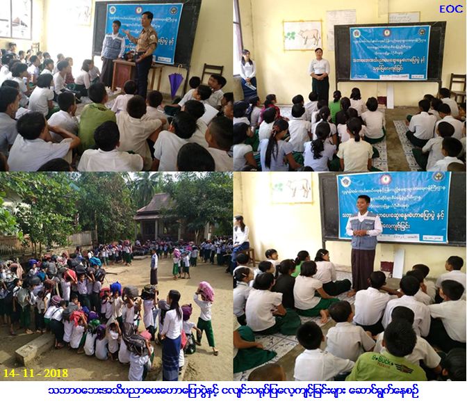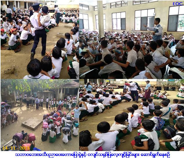 လူမှုဝန်ထမ်း၊ ကယ်ဆယ်ရေးနှင့် ပြန်လည်နေရာချထားရေးဝန်ကြီးဌာန၊ ဘေးအန္တရာယ်ဆိုင်ရာစီမံခန့်ခွဲမှုဦးစီးဌာန၊ ဘိုကလေး မြို့နယ်ဦးစီးမှူးရုံးမှ တာဝန်ရှိသူများသည် (၁၄-၁၁-၂၀၁၈) ရက်နေ့ နံနက် (၁ဝး၀၀) နာရီအချိန်တွင် ဘိုကလေးမြို့နယ်၊ သာပေါင်းကျေးရွာအုပ်စု၊ သာပေါင်းကျေးရွာ အ.လ.က (၁) အခြေခံပညာအလယ်တန်းကျောင်းတွင် သဘာဝဘေးအသိပညာ ပေးဟောပြောပွဲနှင့် ငလျင်သရုပ်ပြလေ့ကျင့်ခြင်းအစီအစဉ်အား အ.လ.က (၁) နှင့် (၂) တို့ ပူးပေါင်းကျင်းပ ဆောင်ရွက်ခဲ့ရာ အခမ်းအနားတွင် ကျေးရွာအုပ်စုအုပ်ချုပ်ရေးမှူးမှ အဖွင့်အမှာစကားပြောကြားပြီး ကျောင်းအုပ်ဆရာကြီးမှ အမှာစကားပြောကြား ကာ အခမ်းအနားကိုကျင်းပခဲ့ရာ မြို့နယ်မီးသတ်ဦးစီးဌာန၊ မြို့နယ်ကျန်းမာရေးဦးစီးဌာန၊ ကျေးရွာ အုပ်စု အုပ်ချုပ်ရေးမှူး၊ ရပ်မိ ရပ်ဖများ၊ ကျေးရွာသူ/သားများ၊ ကျောင်းအုပ်ဆရာကြီးနှင့် ဆရာ/မများ၊ မြို့နယ်ကြက်ခြေနီ သူနာပြုတပ်ဖွဲ့၊ စေတနာ့ဝန်ထမ်း လူငယ်အဖွဲ့များ၊ ကျောင်းသား/သူ စုစုပေါင်းအင်အား (၆၀၀) ခန့် ပါဝင်ဆောင်ရွက်ခဲ့ကြောင်း သတင်းရရှိပါသည်။