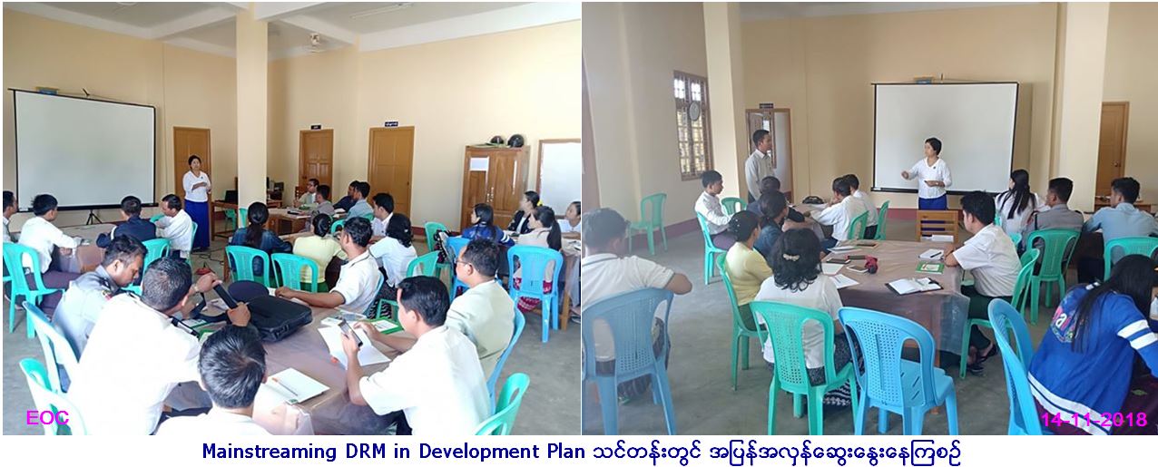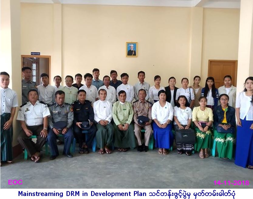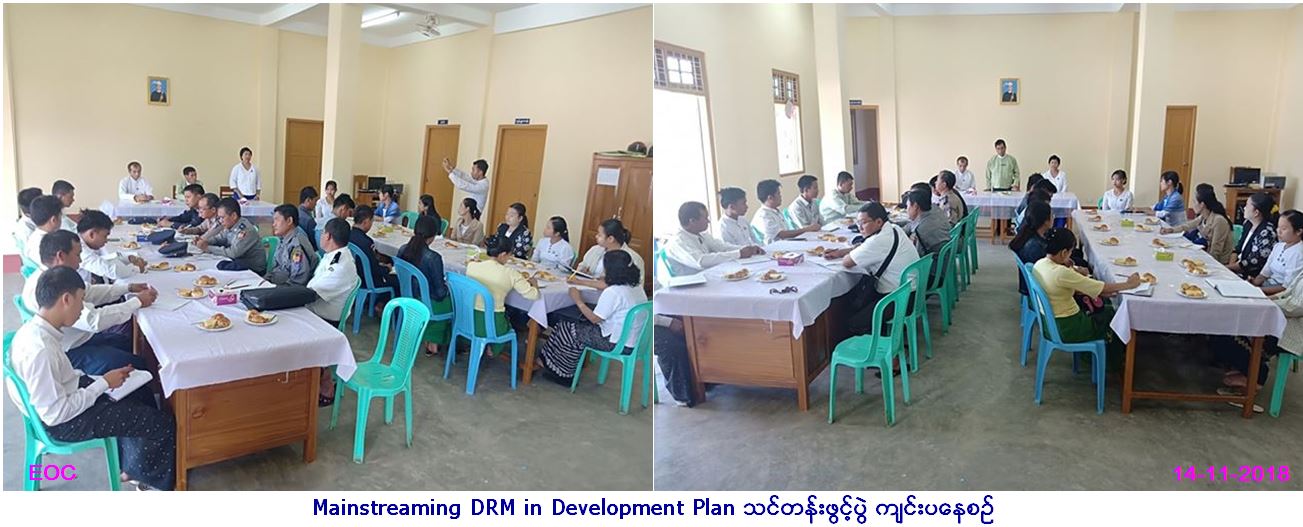 လူမှုဝန်ထမ်း၊ ကယ်ဆယ်ရေးနှင့် ပြန်လည်နေရာချ ထားရေးဝန်ကြီးဌာန၊ ဘေးအန္တရာယ်ဆိုင်ရာစီမံ ခန့်ခွဲမှုဦးစီးဌာန၊ ကယားပြည်နယ်ဦးစီးမှူးရုံး မှ တာဝန်ရှိသူများသည် (၁၄.၁၁.၂၀၁၈)ရက်နေ့တွင် ကယားပြည်နယ်၊ ဘောလခဲခရိုင်၌ ခရိုင်ဌာန ဆိုင်ရာတာဝန်ရှိသူများအနေဖြင့် ဖွံ့ဖြိုးရေး စီမံကိန်းများတွင် ဘေးအန္တရာယ်နှင့် ရာသီဥတုကြောင့် ဆုံးရှုံးနိုင်ခြေစီမံခန့်ခွဲမှုကို ထည့်သွင်းပေါင်းစပ်ခြင်းဆိုင်ရာသင်တန်း (Mainstreaming DRM in Development Plan training)အား ဖွင့်လှစ်ခဲ့ရာ ခရိုင်အဆင့်ဌာနဆိုင်ရာမှ သင်တန်းသား (၂၆)ဦး တက်ရောက်ခဲ့ပြီး (၃) ရက်ကြာ ကျင်းပသွားမည်ဖြစ်ကြောင်း သတင်းရရှိပါသည်။