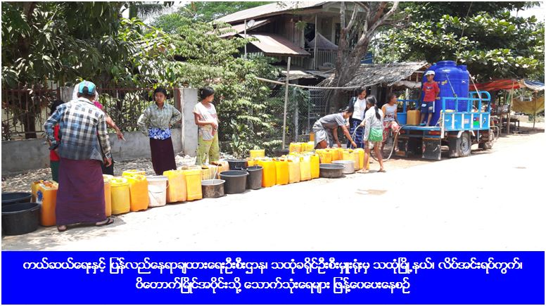 (၂၁-၄-၂၀၁၆) ရက်နေ့တွင် ကယ်ဆယ်ရေးနှင့် ပြန်လည်နေရာချထားရေးဦးစီးဌာန၊ သထုံခရိုင်ဦးစီးမှူးရုံးမှ ဒုတိယညွှန်ကြားရေးမှူး ဒေါ်လှကေသီမာနှင့်အတူ တာဝန်ရှိသူများသည် သထုံမြို့နယ်၊ လိပ်အင်းရပ်ကွက်၊ ပိတောက်မြိုင်အပိုင်းသို့ သွားရောက်ကာ သောက်သုံးရေလီတာ (၃၀၀၀) အား သွားရောက်ဖြန့်ဝေပေးခဲ့ကြောင်း သိရှိရပါသည်။