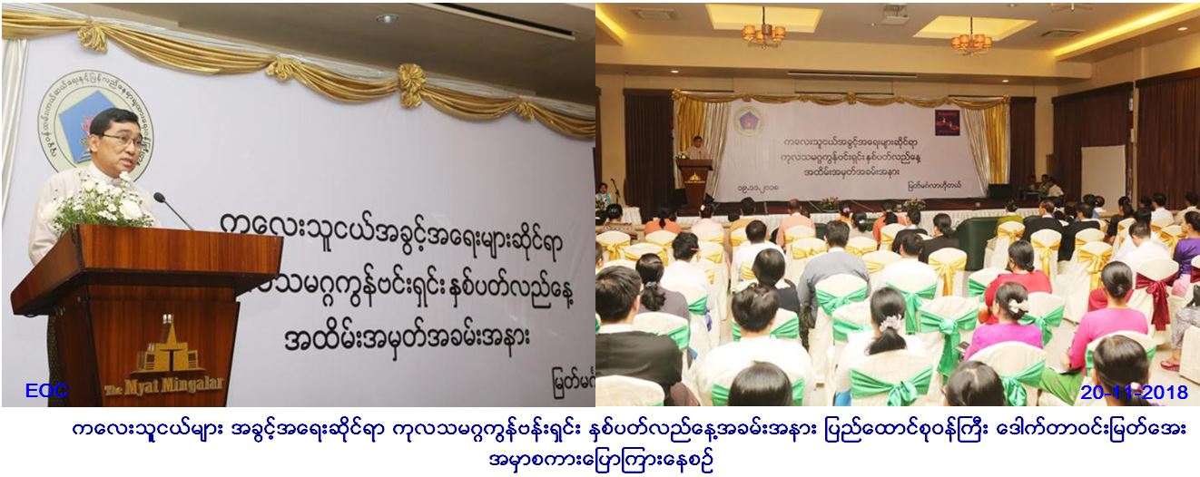 ကလေးသူငယ်များ အခွင့်အရေးဆိုင်ရာ ကုလသမဂ္ဂကွန်ဗန်းရှင်း နှစ်ပတ်လည်နေ့ အခမ်းအနားကို ယမန်နေ့ညနေပိုင်းတွင် နေပြည်တော်၊ မြတ်မင်္ဂလာဟိုတယ်၌ ကျင်းပပြုလုပ်ခဲ့ ရာ လူမှုဝန်ထမ်း၊ ကယ်ဆယ်ရေးနှင့်ပြန်လည်နေရာချ ထားရေးဝန်ကြီးဌာန ပြည်ထောင်စုဝန်ကြီး ဒေါက်တာ ဝင်းမြတ်အေး တက်ရောက်၍ အဖွင့်အမှာစကားပြော ကြားခဲ့ပါသည်။
