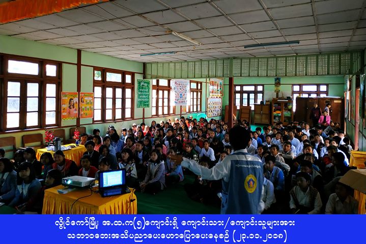 လူမှုဝန်ထမ်း၊ ကယ်ဆယ်ရေးနှင့် ပြန်လည်နေရာချထားရေးဝန်ကြီးဌာန၊ ဘေးအန္တရာယ်ဆိုင်ရာစီမံခန့်ခွဲမှုဦးစီးဌာန၊ ကယား ပြည်နယ်ဦးစီးမှူးရုံးမှ တာဝန်ရှိသူများသည် (၂၃-၁၁-၂၀၁၈) ရက်နေ့၊ (၁၁း၀၀) အချိန်မှ (၁၂း၁၅) နာရီအချိန်ထိ လွိုင်ကော် မြို့နယ်၊ အ.ထ.က (၅) ကျောင်းရှိ ကျောင်းသား/သူ စုစုပေါင်း (၂၃၀) ဦးအား သဘာဝဘေးအသိပညာပေးဟောပြောခဲ့ပြီး အသိပညာပေးလက်ကမ်းစာစောင်များ ဖြန့်ဝေပေးခဲ့ကြောင်း သတင်းရရှိပါသည်။
