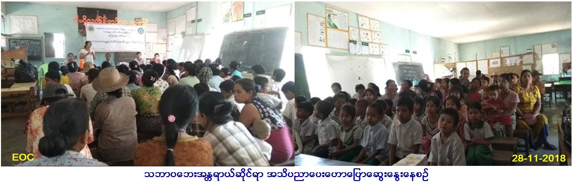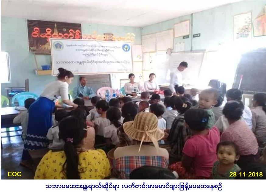 လူမှုဝန်ထမ်း၊ ကယ်ဆယ်ရေးနှင့် ပြန်လည်နေရာချ ထားရေးဝန်ကြီးဌာန၊ ဘေးအန္တရာယ်ဆိုင်ရာစီမံ ခန့်ခွဲမှုဦးစီးဌာန၊ ရေကြည်မြို့နယ်ဦးစီးမှူးရုံးမှ တာဝန်ရှိသူများသည် (၂၈-၁၁-၂၀၁၈)ရက်နေ့တွင် ရေကြည်မြို့နယ်၊ မယင်းကူးကျေးရွာအုပ်စု၊ မယင်းကူးကျေးရွာ၌ ကျေးရွာအုပ်ချုပ်ရေးမှူး၊ ရပ်မိရပ်ဖ၊ ကျောင်းသားကျောင်းသူများ၊ ကျေးရွာသူကျေးရွာသား စုစုပေါင်း(၁၀၀)ဦးအား သဘာဝဘေးအန္တရာယ်ဆိုင်ရာ အသိပညာပေး ဟောပြောဆွေးနွေးခဲ့ကြောင်း သတင်းရရှိပါသည်။