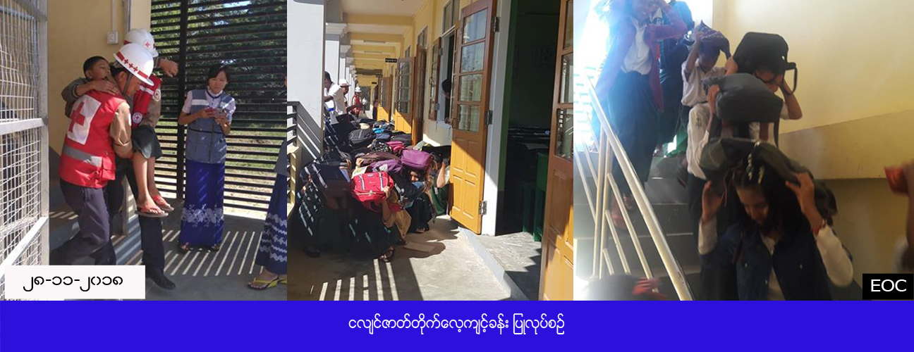 လူမှုဝန်ထမ်း၊ ကယ်ဆယ်ရေးနှင့် ပြန်လည်နေရာချထားရေးဝန်ကြီးဌာန၊ ဘေးအန္တရာယ်ဆိုင်ရာစီမံခန့်ခွဲမှုဦးစီးဌာန၊ ပြည်ထောင်စုနယ်မြေ၊ နေပြည်တော်တိုင်းဦးစီးမှူးရုံးမှ တာဝန်ရှိသူများသည် ပျဉ်းမနားမြို့နယ်အထွေထွေအုပ်ချုပ်ရေးဦးစီးဌာန၊ ကြက်ခြေနီကြီးကြပ်မှုကော်မတီတို့နှင့် ပူးပေါင်း၍ အမှတ်(၃) အ.ထ.က စာသင်ကျောင်းရှိ ဆရာ/ဆရာမများ၊ ကျောင်းသူ/ကျောင်းသားများ စုစုပေါင်း (၃၃၀) ဦးတို့အား ငလျင်အသိပညာပေးဟောပြောပွဲနှင့် ငလျင်ဇာတ်တိုက်လေ့ကျင့်ခန်းကို ( ၂၈-၁၁-၂၀၁၈ ) ရက်နေ့၊ နံနက်(၀၉:၃၀)အချိန်မှ နေ့လည်(၁၁:၃၀)အချိန်ထိ ကျင်းပပြုလုပ်ခဲ့ပါကြောင်းနှင့် ကျောင်းအတွက် ဗီနိုင်းပိုစတာ၊ လက်ကမ်းစာစောင်များ ဖြန့်ဝေခဲ့ကြောင်း သိရှိရပါသည်။