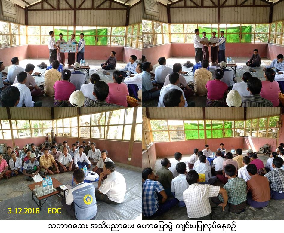 လူမှုဝန်ထမ်း၊ ကယ်ဆယ်ရေးနှင့် ပြန်လည်နေရာချထားရေးဝန်ကြီးဌာန၊ ဘေးအန္တရာယ်ဆိုင်ရာစီမံခန့်ခွဲမှုဦးစီးဌာန၊ ဘိုကလေးမြို့နယ်ဦးစီးမှူးရုံးမှ တာဝန်ရှိသူများသည် (၃-၁၂-၂၀၁၈) ရက်နေ့၊ နံနက် (၁ဝး၀၀) နာရီအချိန်တွင် ဘိုကလေးမြို့နယ်၊ ဟေမာန်ကျေးရွာအုပ်စု၊ ကျုံလွှတ်ကြီးကျေးရွာ၌ လူမှုဝန်ထမ်း၊ ကယ်ဆယ်ရေးနှင့် ပြန်လည် နေရာချထားရေးဝန်ကြီးဌာနမှ ခွင့်ပြုငွေဖြင့် ဆောက်လုပ်မည့် School Cam Shelter အတွက် လိုအပ်သည်များကို မြို့နယ်အထွေထွေအုပ်ချုပ်ရေးဦးစီးဌာန၊ ကျေးရွာအုပ်စုအုပ်ချုပ်ရေးမှူး၊ ကျေးရွာအုပ်စုစာရေး၊ ရပ်မိ/ရပ်ဖများ၊ ကျေးရွာတာဝန်ခံများ၊ တင်ဒါအောင်မြင်သော ကုမ္ပဏီမှတာဝန်ရှိသူများနှင့်အတူ လိုအပ်သည်များ ပေါင်းစပ် ညှိနှိုင်းဆောင်ရွက်ခဲ့ပြီး သဘာဝဘေး အသိပညာပေးဟောပြောခြင်း ဆောင်ရွက်ခဲ့ကာ လက်ကမ်းစာဆောင်များ နှင့် ပိုစတာများဖြန့်ဝေပေးခဲ့ပါသည်။ အဆိုပါအခမ်းအနား၌ စုစုပေါင်းအင်အား (၅၀) ဦးခန့်တက်ရောက်ခဲ့ပါသည်။