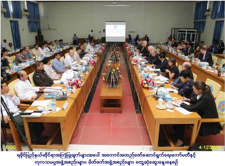 ထို့နောက် ကုလသမဂ္ဂနှင့်နိုင်ငံတကာအဖွဲ့အစည်းများ၊ သံရုံးများဘက်မှ United Nations Resident and Humanitarian Coordinator ၊ Mr. Knut Ostby က ဦးဆောင် ဆွေးနွေးရာတွင် ရခိုင်ပြည်နယ်ဆိုင်ရာအကြံပေးကော်မရှင်၏ အကြံပြုချက်များမှာ မူဝါဒ လမ်းညွန်အဖြစ်တည်ရှိနေပါကြောင်း၊ မြန်မာအစိုးရ၏ ဆောင်ရွက်မှုများကို အသိအမှတ်ပြု ပါကြောင်း၊ အကြံပြုချက်များအကောင်အထည်ဖော်ရာတွင် နိုင်ငံတကာ အဖွဲ့အစည်းများမှ ပူးပေါင်းဆောင်ရွက်လိုပါကြောင်း၊ ထိုသို့ပူးပေါင်းဆောင်ရွက်နိုင်မည့် လုပ်ငန်းစီမံချက်အား ရေးဆွဲဆောင်ရွက်နိုင်မည်ဆိုပါက လက်တွေ့ကျသည့် ပူးပေါင်း ဆောင်ရွက်မှုများပေါ်ထွန်းလာနိုင်မည်ဖြစ်ပါကြောင်း၊ ဤကဲ့သို့ ညှိနှိုင်းအစည်းအဝေးကိုလည်း ဆက်လက်ပြုလုပ်စေလိုပါကြောင်း၊ ပူးပေါင်းဆောင်ရွက်မည့် လုပ်ငန်းစီမံချက်များမှာ မြန်မာနိုင်ငံ၏ ရေရှည်တည်တံ့ခိုင်မြဲပြီး ဟန်ချက်ညီသော ဖွံ့ဖြိုးတိုးတက်မှုစီမံကိန်း (၂၀၁၈-၂၀၃၀)နှင့် ချိတ်ဆက်ဆောင်ရွက် နိုင်ပါကြောင်း၊ လုံခြုံရေး၊ နိုင်ငံသားဖြစ်မှု၊ လွတ်လပ်စွာလှုပ်ရှား သွားလာခွင့်၊ IDP စခန်းများပိတ်သိမ်းရေးနှင့် လူမှုသဟဇာတ မျှတရေးတို့မှာ အလွန် အရေးပါသည့် ကိစ္စရပ်များဖြစ်ပြီးအောက်ခြေအဆင့်ထိ ပြောင်းလဲမှုများရှိစေရေး၊ ဆောင်ရွက်နေမှုများကိုသိရှိရပါကြောင်း၊ လူသားချင်း စာနာထောက် ထားမှုအကူအညီများ ပေးအပ်ရာတွင် ကြက်ခြေနီလှုပ်ရှားမှု၊ အာဆီယံနိုင်ငံများနှင့် AHA Centre တို့ ပူးပေါင်း ပါဝင်မှုများကို ကြိုဆိုပါကြောင်း၊ နိုင်ငံတကာ အဖွဲ့အစည်းများအနေဖြင့် မြန်မာနိုင်ငံအစိုးရနှင့် ပူးပေါင်းဆောင်ရွက်ရန် အသင့်ရှိပါကြောင်း ဆွေးနွေးခဲ့ပါသည်။