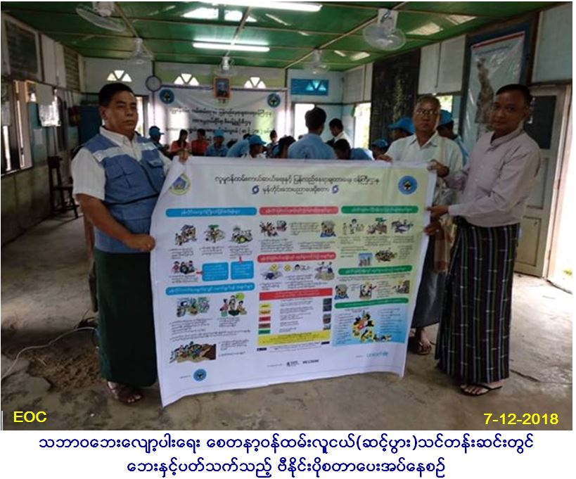 လူမှုဝန်ထမ်း၊ ကယ်ဆယ်ရေးနှင့် ပြန်လည်နေရာချထားရေးဝန်ကြီးဌာန၊ ဘေးအန္တရာယ်ဆိုင်ရာစီမံခန့်ခွဲမှုဦးစီးဌာန၊ ပြည်ထောင်စုနယ်မြေ၊ နေပြည်တော်တိုင်းဦးစီးမှူးရုံးမှ တာဝန်ရှိသူများသည် ဥတ္တရသီရိမြို့နယ်၊ တောင်ညိုကျေးရွာအုပ်စုအုပ်ချုပ်ရေးမှူးရုံး၌ သဘာဝဘေးလျော့ပါးရေး စေတနာ့ဝန်ထမ်းလူငယ် (ဆင့်ပွား)သင်တန်း (၅/၂၀၁၈)ကို (၅-၁၂-၂၀၁၈)ရက်နေ့မှ (၇-၁၂-၂၀၁၈)ရက်နေ့ထိ ကျင်းပဖွင့်လှစ်ခဲ့ရာ (၇-၁၂-၂၀၁၈)ရက်နေ့တွင် သင်တန်းဆင်းပွဲကျင်းပပြုလုပ်ခဲ့ကြောင်း သတင်းရရှိပါသည်။