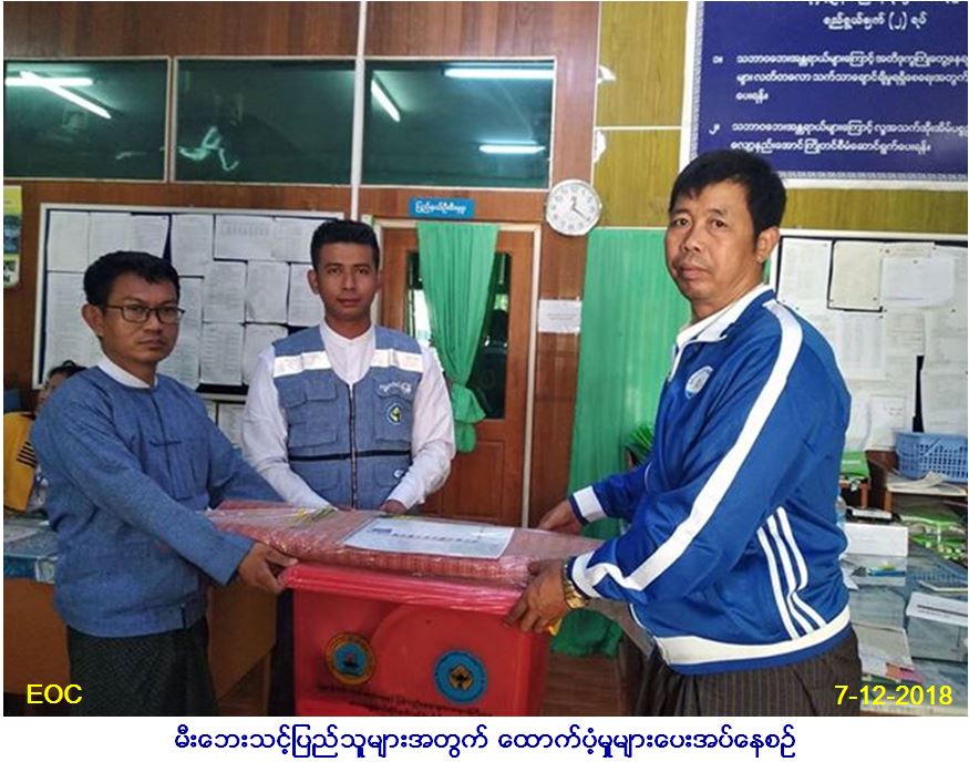 လူမှုဝန်ထမ်း၊ ကယ်ဆယ်ရေးနှင့် ပြန်လည်နေရာချထားရေးဝန်ကြီးဌာန၊ ဘေးအန္တရာယ်ဆိုင်ရာစီမံခန့်ခွဲမှုဦးစီးဌာန၊ ကချင်ပြည်နယ်ဦးစီးမှူးရုံးမှ တာဝန်ရှိသူများသည် မြစ်ကြီးနားခရိုင်၊ မြစ်ကြီးနားမြို့နယ်၊ တာလောကြီးကျေးရွာ၊ ရပ်ကွက်(၈)၌ (၁-၁၂-၂၀၁၈)ရက်နေ့ (၁၃း၁၄)နာရီ အချိန်ဖြစ်ပွားခဲ့သည့် မီးဘေးတွင် ဘေးသင့်အိမ်ထောင်စု(၁)စု၊ လူဦးရေ(၃)ဦးတို့အတွက် ကယ်ဆယ်ရေးပစ္စည်း (၁၇)မျိုး၊ အိမ်ဆောက် ပစ္စည်းဖိုး(၁၀၀,၀၀၀)ကျပ်နှင့် လူဦးရေ(၃)ဦးအတွက် ဆန်ရိက္ခာ(၇)ရက်စာ ဖိုး(၆,၃၀၀)ကျပ်၊ စုစုပေါင်း (၁၀၆,၃၀၀)ကျပ်တို့အား (၇-၁၂-၂၀၁၈) ရက်နေ့ (၁၂း၂၀)နာရီအချိန်တွင် ထောက်ပံ့ပေးအပ်ခဲ့ကြောင်း သတင်းရရှိပါသည်။