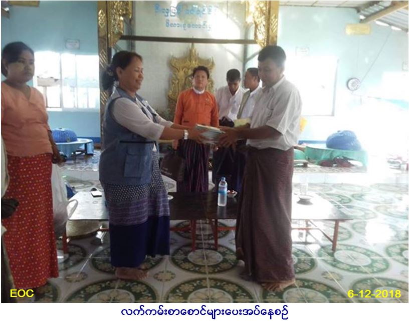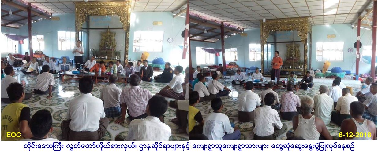 လူမှုဝန်ထမ်း၊ ကယ်ဆယ်ရေးနှင့် ပြန်လည်နေရာချထားရေးဝန်ကြီးဌာန၊ ဘေးအန္တရာယ်ဆိုင်ရာစီမံခန့်ခွဲမှုဦးစီးဌာန၊ ဖျာပုံခရိုင်ဦးစီးမှူးရုံးမှ တာဝန်ရှိသူများသည် ဒီဇင်ဘာလ(၆)ရက်နေ့၌ ဘဝသစ်ကျေးရွာအုပ်စု အရှေ့ဖျားကျေးရွာ၊ ရွာလယ်ဘုန်းတော်ကြီးကျောင်း တွင် တိုင်းဒေသကြီး လွှတ်တော်ကိုယ်စားလှယ် ဦးဘိုဘိုမင်းဇော်နှင့်အတူ ဖျာပုံခရိုင်/မြို့နယ်အဆင့် ဌာနဆိုင်ရာများနှင့် ကျေးရွာသူကျေးရွာသားများနှင့် တွေ့ဆုံပွဲ တွင် ဌာနမှ ဆောင်ရွက်ချက်များရှင်း လင်းခဲ့ပြီး လက်ကမ်းစာစောင်နှင့် ဗီနိုင်းပိုစတာများဖြန့်ဝေပေးခဲ့ကြောင်း သတင်းရရှိပါသည်။