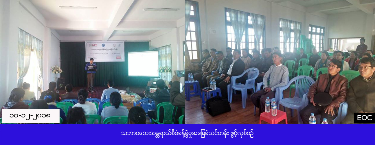 လူမှုဝန်ထမ်း၊ ကယ်ဆယ်ရေးနှင့် ပြန်လည်နေရာချထားရေးဝန်ကြီးဌာန၊ ဘေးအန္တရာယ်ဆိုင်ရာစီမံခန့်ခွဲမှုဦးစီးဌာန၊ ဖလမ်းခရိုင်ဦးစီးမှူးရုံးမှ တာဝန်ရှိသူများသည် မြန်မာနိုင်ငံ ဘေးအန္တရာယ်ကြိုတင်ပြင်ဆင်မှုမိတ်ဖက်အဖွဲ့ (Myanmar Preparedness Partnership-MPP) နှင့် ပူးပေါင်း၍ သဘာဝဘေးအန္တရာယ်စီမံခန့်ခွဲမှုအခြေခံသင်တန်းအား (၁၀-၁၂-၂၀၁၈) ရက်နေ့တွင် ဖလမ်းမြို့ ဖါရ်ထောက်ရပ်ကွက်ရှိ YCC ခန်းမ၌ ဖွင့်လှစ်ခဲ့ရာ သင်တန်းသို့ ဖလမ်းခရိုင်အတွင်းရှိ မြို့နယ် (၃) မြို့နယ်မှ သင်တန်းသား/သူ(၃၀)ဦးတက်ရောက်ခဲ့ပါသည်။ အဆိုပါသင်တန်းသည် (၁၀-၁၂-၂၀၁၈) ရက်နေ့မှ (၁၂-၁၂-၂၀၁၈) ရက်နေ့ထိ (၃) ရက်ကြာဖွင့်လှစ်မည်ဖြစ်ကြောင်း သိရှိရပါသည်။