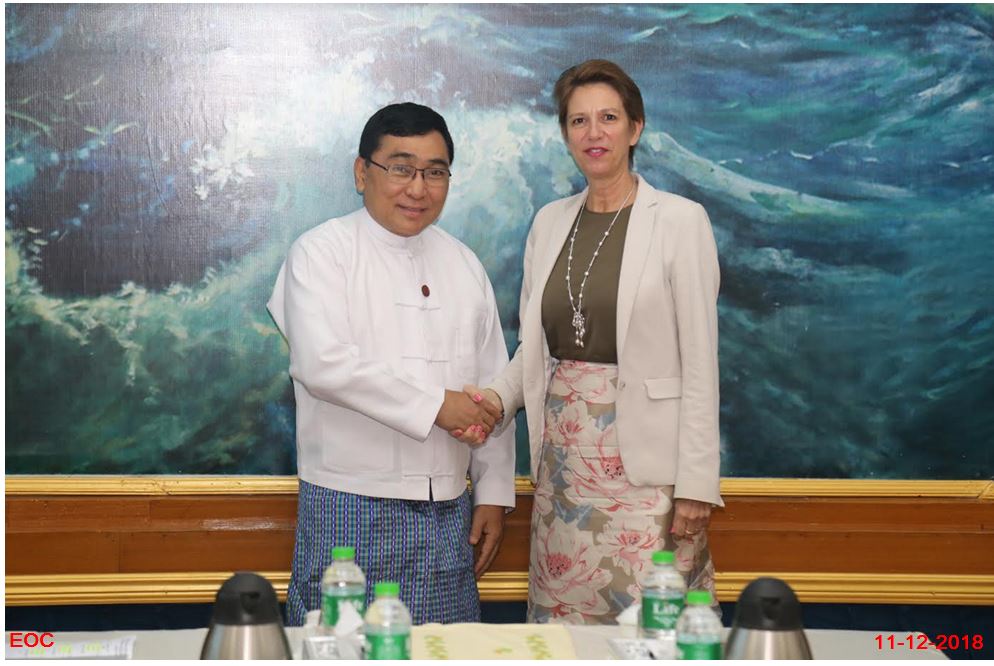 မြန်မာနိုင်ငံဆိုင်ရာ ကနေဒါသံအမတ်ကြီး H.E. Mr. Karen MacArthur နှင့်တွေ့ဆုံ ဆွေးနွေးရာတွင် ကနေဒါနိုင်ငံ၏ အပြည်ပြည် ဆိုင်ရာအကူအညီပေးရေးစီမံကိန်းများနှင့် ပတ်သက်၍ ရခိုင်၊ ကချင်နှင့် ရှမ်းပြည်နယ်တို့တွင် ဆောင်ရွက်လျက်ရှိသော စီမံချက်များ၏ နောက်ဆုံးအခြေအနေများ၊ အသစ်တိုးချဲ့ဆောင်ရွက်မည့် စီမံချက်(၃)ခုဖြစ်သော Health Empowerment ၊ Women’s Voice and Leadership နှင့် ရခိုင်ပြည်နယ် အကြံပြုချက်များ အကောင်အထည်ဖော်ဆောင်ရွက်ခြင်းနှင့် သက်ဆိုင်သည့် စီမံချက်များအတွက် ဝန်ကြီး ဌာနမှ အကြံပြုလမ်းညွှန်ချက်များ၊ သဘာဝဘေးအန္တရာယ် စီမံခန့်ခွဲမှုနှင့် ဘေးလျော့ပါးရေးဆိုင်ရာ ကိစ္စရပ်များအတွက် ကနေဒါနိုင်ငံအစိုးရမှ နည်းပညာထောက်ပံ့မှု အကူအညီပေးမှုများအပေါ် သုံးသပ်ဆွေးနွေးချက်များ၊ ဘေးလျော့ပါးရေးလုပ်ငန်း များ ဆောင်ရွက်ရာတွင် Myanmar Action Plan on Disaster Risk Reduction (MAPDRR) နှင့် ချိတ်ဆက်ဆွေးနွေးနိုင်ရေး ကိစ္စရပ်များ၊ ရခိုင်ပြည်နယ်ရှိ နေရပ်စွန့်ခွာသူများ ပြန်လည် လက်ခံရေးနှင့်စပ်လျဉ်း၍ နောက်ဆုံးအခြေအနေများ၊ နေရပ်စွန့်ခွာသူများထံသို့ မှန်ကန်သောသတင်း အချက် အလက် များရောက်ရှိ ရေးအတွက် ညှိနှိုင်းဆောင်ရွက်မည့် အခြေအနေများ၊ ရခိုင်ပြည်နယ်အပါအဝင် ပြည်နယ်အသီးသီးရှိ IDP စခန်းများ ပိတ်သိမ်းရေးအတွက် အမျိုးသားအဆင့် မဟာဗျူဟာရေးဆွဲဆောင်ရွက်နေမှုများနှင့် ကုလသမဂ္ဂအဖွဲ့အစည်းများအပါအဝင် ကျွမ်းကျင်ပုဂ္ဂိုလ်များနှင့် ပူးပေါင်း ဆောင်ရွက်နေမှုများ၊ ရခိုင်ပြည်နယ်ရှိ လူ့အသိုင်းအဝန်းများအကြား လူမှုသဟဇာတမျှတရေး၊ ယုံကြည်မှု တည်ဆောက်ရေးဆောင်ရွက် နေမှုများ၊ နေရပ်စွန့်ခွာသူများ ပြန်လည်လက်ခံရေး အတွက် အာဆီယံအတွင်းရေးမှူးချုပ်ရုံးနှင့် AHA Centre တို့နှင့် ချိတ်ဆက်ဆောင်ရွက်နေမှု များကို ဆွေးနွေးခဲ့ကြပါသည်။