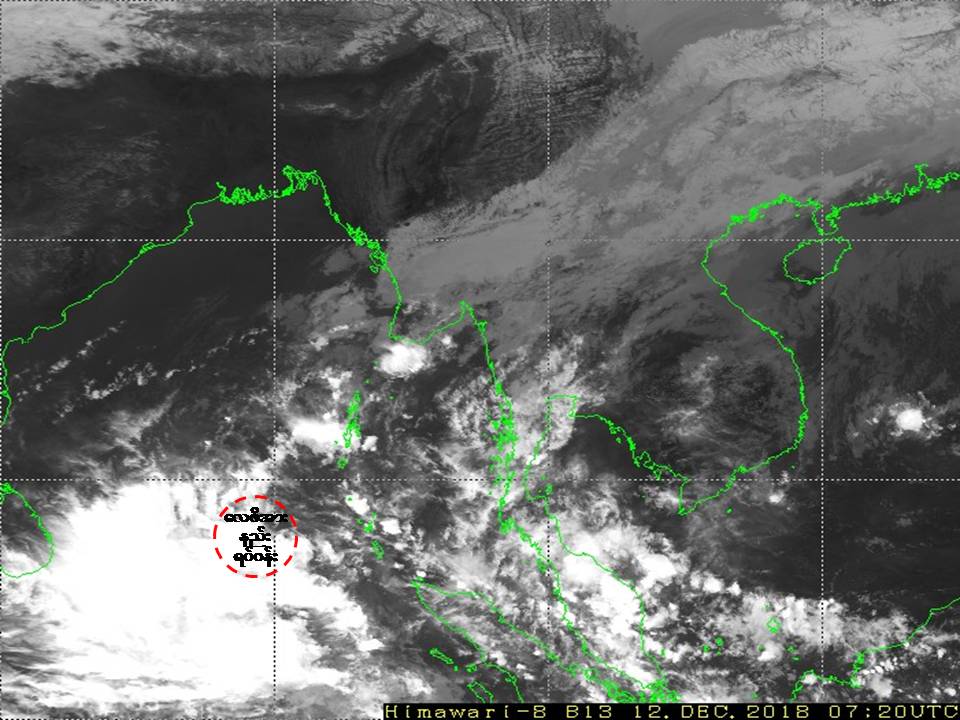 “ယနေ့မြန်မာစံတော်ချိန်(၁၃:၃၀)နာရီအချိန် တိုင်းထွာချက်များအရ ဘင်္ဂလားပင်လယ်အော်တောင်ပိုင်းနှင့် ယင်းနှင့်ဆက်စပ်လျက်ရှိသော အီကွေတာအနီး အိန္ဒိယသမုဒ္ဒရာ တို့တွင် ဖြစ်ပေါ်နေသော လေဖိအားနည်းရပ်ဝန်းသည် ဘင်္ဂလားပင်လယ်အော်အရှေ့တောင်ပိုင်းနှင့် ယင်းနှင့် ဆက်စပ်လျက်ရှိသော အီကွေတာအနီး အိန္ဒိယသမုဒ္ဒရာတို့တွင် ဆက်လက်တည်ရှိနေပါသည်။ အဆိုပါ လေဖိအားနည်းရပ်ဝန်းသည် နောက်(၂၄)နာရီအတွင်း ပိုမိုအားကောင်းလာကာ မုန်တိုင်းငယ် (Depression) အဖြစ်သို့ ရောက်ရှိလာနိုင်သည်ဟု ခန့်မှန်းရပါသည်။”