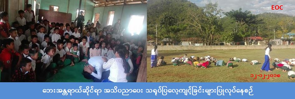 (၁၂.၁၂-၂၀၁၈) ရက်နေ့တွင် အမှတ် (၃) ရပ်ကွက်၊ အခြေခံပညာမူလတန်းလွန်ကျောင်းတွင် ငလျင်ဘေးနှင့် အခြားသဘာဝ ဘေးအန္တရာယ်များနှင့်ပတ်သက်၍ အသိပညာပေးဟောပြောပွဲ ပြုလုပ်ဆောင်ရွက်ခဲ့ပါသည်။ အဆိုပါဟောပြောပွဲတွင် တာတုံမြို့အုပ်ချုပ်ရေးမှူးမှ သဘာဝဘေးအန္တရာယ်အကြောင်း သိကောင်းစရာနှင့်ပတ်သက်၍ အဖွင့်အမှာစကား ပြောကြားပြီး မိုင်းပျဉ်းမြို့နယ်ဦးစီးမှူးရုံးမှ တာဝန်ရှိသူများသည် ဦးစီးဌာန၏ လုပ်ငန်းတာဝန်များ၊ ရည်ရွယ်ချက်များ၊ ဘေး (၈) မျိုး ဆောင်ရန်/ရှောင်ရန်များ၊ ငလျင်ဘေးနှင့်ပတ်သက်၍ လက်တွေ့သရုပ်ပြခြင်း၊ လက်တွေ့ပါဝင် ဆောင်ရွက်စေခြင်း၊ အသိပညာပေးလက်ကမ်းစာစောင်များ ဖြန့်ဝေပေးခဲ့ကာ ဆရာ/မနှင့် ကျောင်းသား/သူ၊ စုစုပေါင်း (၁၂၀) ဦးအား တက်ရောက် ခဲ့ကြောင်း သိရှိရပါသည်။