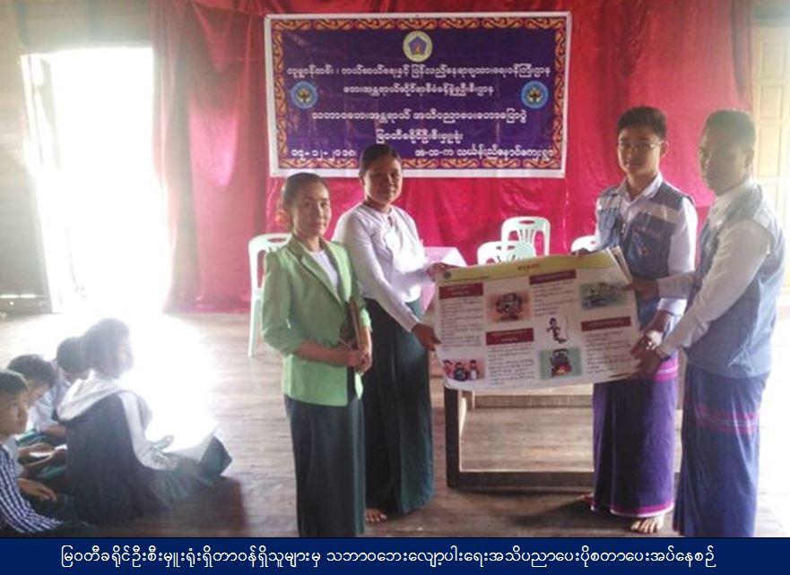 လူမှုဝန်ထမ်း၊ ကယ်ဆယ်ရေးနှင့် ပြန်လည်နေရာချထားရေးဝန်ကြီးဌာန၊ ဘေးအန္တရာယ်ဆိုင်ရာစီမံခန့်ခွဲမှုဦးစီးဌာန၊ မြဝတီခရိုင်ဦးစီးမှူးရုံးမှ တာဝန်ရှိသူများသည်(၁၄-၁၂-၂၀၁၈) ရက်နေ့၊ (၀၉၃၀)နာရီအချိန်၌ မြဝတီမြို့၊ သင်္ဃန်းညီနောင်ကျေးရွာ အခြေခံပညာအထက်တန်းကျောင်းတွင် သဘာဝဘေးအန္တရာယ်အသိပညာပေးဟောပြောပွဲ အခမ်းအနားကျင်းပပြုလုပ်ခဲ့ရာ အဆိုပါ ဟောပြေပွဲသို့ ဆရာ/ဆရာမနှင့် ကျောင်းသား/သူ (၁၅၀) ဦးခန့်တက်ရောက်ခဲ့ကြောင်းနှင့် တက်ရောက်လာသူများအား သဘာဝဘေးအန္တရာယ်များနှင့်ပတ်သက်၍ ဆောင်ရန်/ရှောင်ရန် အချက်အလက်များအား အသိပညာပေးဟောပြောခဲ့ပြီး နံရံကပ်ပိုစတာများနှင့် လက်ကမ်းစာစောင်များဖြန့်ဝေခဲ့ကြကြောင်း သတင်းရရှိပါသည်။