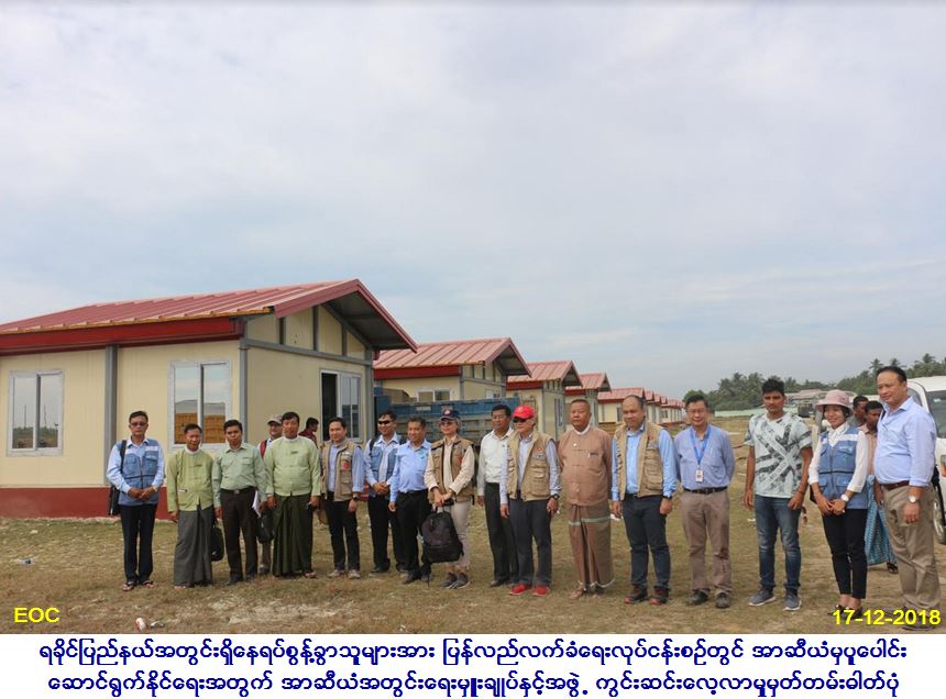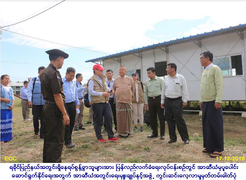 မြန်မာနိုင်ငံက အကောင်အထည်ဖော်ဆောင် ရွက်လျက်ရှိသည့် ပြန်လည်လက်ခံရေးလုပ်ငန်းစဉ် များ၏ ပြီးစီးမှုအခြေအနေများကို လေ့လာနိုင်ရန် အတွက် အာဆီယံအတွင်းရေးမှူးချုပ်၊ H.E. Mr. Lim Jock Hoi၊ လူမှုရေးနှင့်ယဉ်ကျေးမှု အသိုက် အဝန်းဆိုင်ရာ အာဆီယံ ဒုတိယအတွင်းရေးမှူးချုပ်နှင့် သဘာဝဘေးစီမံခန့်ခွဲမှုအတွက် လူသားချင်းစာနာ ကူညီမှုဆိုင်ရာ အာဆီယံညှိနှိုင်းရေးမှူးရုံး၏ အမှုဆောင် ညွှန်ကြားရေးမှူး ဦးဆောင်သော ကိုယ်စားလှယ်အဖွဲ့သည် လူမှုဝန်ထမ်း၊ ကယ်ဆယ်ရေးနှင့် ပြန်လည်နေရာချထားရေး ဝန်ကြီးဌာန၊ ဒုတိယ ဝန်ကြီး၊ ဦးစိုးအောင်နှင့် ဌာနဆိုင်ရာကိုယ်စား လှယ်များလိုက်ပါလျက် ရခိုင်ပြည်နယ်၊ မောင်တောမြို့နယ်ရှိ တောင်ပြိုလက်ဝဲပြန်လည် လက်ခံရေးစခန်း၊ ငါးခူရပြန်လည်လက်ခံရေး၊ လှဖိုးခေါင်ကြားစခန်းနှင့် ရွှေဇားကျေးရွာများသို့သွားရောက်ခဲ့ရာ ဒုတိယဝန်ကြီးနှင့် တာဝန်ရှိ သူများက မြေပြင်တွင် ဆောင်ရွက် ပြီးစီးမှုများကို လိုက်လံရှင်းလင်းပြသ ခဲ့ပါသည်။
