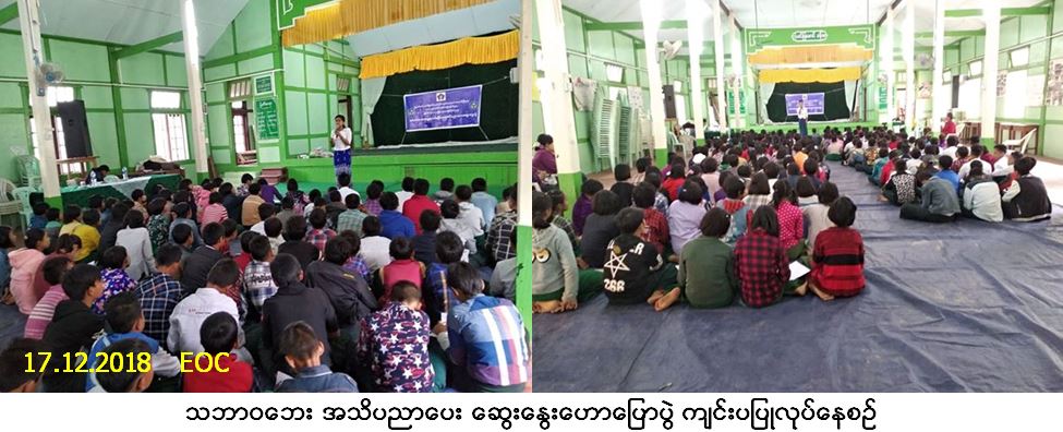 လူမှုဝန်ထမ်း၊ ကယ်ဆယ်ရေးနှင့် ပြန်လည်နေရာချထားရေးဝန်ကြီးဌာန၊ ဘေးအန္တရာယ်ဆိုင်ရာ စီမံခန့်ခွဲမှုဦးစီးဌာန၊ ကသာခရိုင်ဦးစီးမှူးရုံးမှ တာဝန်ရှိသူများသည် ထီးချိုင့်မြို့၊ အခြေခံပညာအထက်တန်းကျောင်း၌ (၁၇-၁၂-၂၀၁၈) ရက်နေ့တွင် သဘာဝဘေး အသိပညာပေး ဆွေးနွေးဟောပြောပွဲ ကျင်းပပြုလုပ်ခဲ့ရာ ကျောင်းသား/သူ စုစုပေါင်း (၂၅၀) ဦးတက်ရောက်ခဲ့ပြီး တက်ရောက်လာသူများအား လက်ကမ်းစာစောင်များဖြန့်ဝေခြင်းနှင့် ဘေးအန္တရာယ် ဆိုင်ရာမေးခွန်းများအား မေးမြန်းရာတွင် ဖြေဆိုနိုင်သည့် ကျောင်းသား/သူများအား စာရေးကိရိယာအစုံများ ပေးအပ်ခဲ့ပါကြောင်း သတင်းရရှိပါသည်။