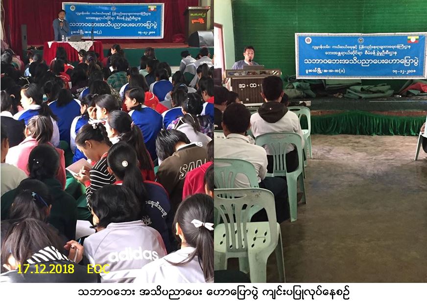 လူမှုဝန်ထမ်း၊ ကယ်ဆယ်ရေးနှင့် ပြန်လည်နေရာချထားရေးဝန်ကြီးဌာန၊ ဘေးအန္တရာယ်ဆိုင်ရာ စီမံခန့်ခွဲမှုဦးစီးဌာန၊ မူဆယ်မြို့နယ်ဦးစီးမှူးရုံးမှ တာဝန်ရှိသူများသည် (၁၇-၁၂-၂၀၁၈) ရက်နေ့၊ နံနက်ပိုင်းတွင် မူဆယ်မြို့ အ.ထ.က (၂) ကျောင်း၌ ကျောင်းသား/သူ (၂၀၀) ဦးအားလည်းကောင်း၊ မွန်းလွဲပိုင်းတွင် အ.ထ.က (၁) ကျောင်း၌ ကျောင်းသား/သူ (၂၅၀) ဦးအားလည်းကောင်း၊ ရာသီဥတုပြောင်းလဲမှုဖြစ်စဉ်များ၊ သဘာဝဘေးအန္တရာယ်များ ဖြစ်ပွားလာမှုနှင့် ငလျင်ဘေး၊ ရေဘေး၊ မိုးကြိုးဘေး၊ လေပြင်းဘေးနှင့် အခြားသဘာဝဘေးများအတွက် ဆောင်ရန်/ ရှောင်ရန်အချက်များအား ဟောပြောခြင်းတို့ဆောင်ရွက်ခဲ့ပြီး၊ တက်ရောက်လာသူများအား လက်ကမ်းစာစောင်များဖြန့်ဝေခဲ့ပါကြောင်း သတင်းရရှိပါသည်။