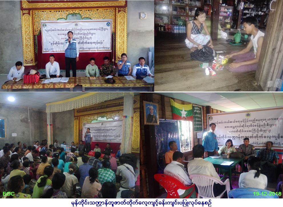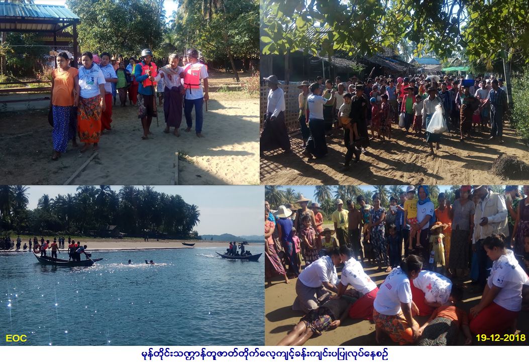 လူမှုဝန်ထမ်း၊ ကယ်ဆယ်ရေးနှင့်ပြန်လည်နေရာချထားရေးဝန်ကြီးဌာန၊ ဘေးအန္တရာယ်ဆိုင်ရာစီမံခန့်ခွဲမှုဦးစီးဌာန၊ ဧရာဝတီတိုင်းဒေသကြီး ဦးစီးမှူးရုံးမှ ကြီးမှူး၍ (၁၈-၁၂-၂၀၁၈)ရက်နေ့မှ (၁၉-၁၂-၂၀၁၈)ရက်နေ့အထိ ပုသိမ်ခရိုင်၊ ပုသိမ်မြို့နယ်၊ ရွှေသောင်ယံမြို့၊ ဘောမိကျေးရွာ အုပ်စု၊ ဘောမိကျေးရွာ၌ မုန်တိုင်းသဏ္ဌာန်တူဇာတ်တိုက်လေ့ကျင့်ခန်းအား ကျင်းပပြုလုပ်ခဲ့ရာ ဘေးအန္တရာယ်ဆိုင်ရာစီမံခန့်ခွဲမှုဦးစီးဌာန၊ ဧရာဝတီတိုင်းဒေသကြီးဦးစီးမှူး၊ ဦးသန်းစိုး (ညွှန်ကြားရေးမှူး)မှ အဖွင့်အမှာစကားပြောကြားခြင်း၊ မိုးလေဝသနှင့်ဇလဗေဒညွှန်ကြားမှုဦးစီးဌာန၊ ဧရာဝတီတိုင်းဒေသကြီးဦးစီးမှူးရုံးမှ ဦးလှမြင့်(ဦးစီးအရာရှိ)၊ ရွှေသောင်ယံမြို့ အထွေထွေအုပ်ချုပ်ရေးဦးစီးဌာနမှ မြို့အုပ်ချုပ်ရေးမှူး ဦးမင်း မင်းဦး၊ ဧရာဝတီတိုင်းဒေသကြီး ကြက်ခြေနီတပ်ဖွဲ့မှ ဦးထွန်းထွန်းဝင်း၊ နယ်မြေခံတပ်ခွဲမှ တပ်ခွဲမှူးနှင့် စစ်သည်များ၊ ကျေးရွာ အရန်မီးသတ် တပ်ဖွဲ့ဝင်များ၊ ဘောမိကျေးရွာမှ ရပ်မိရပ်ဖများ၊ စေတနာ့ဝန်ထမ်းများ၊ ကျေးရွာသူ/ ကျေးရွာသား (၃၅၀)ဦးခန့်တို့ပူးပေါင်း၍ ကျင်းပပြုလုပ် ခဲ့ကြောင်း သတင်းရရှိပါသည်။