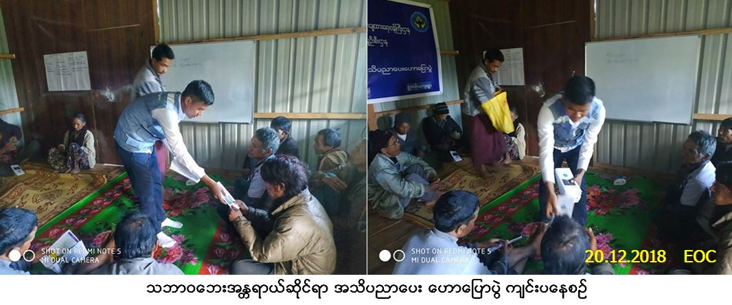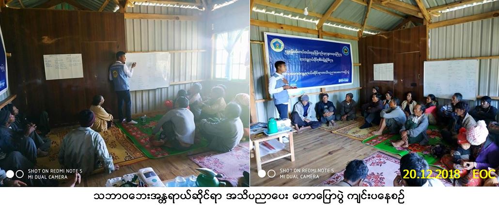 လူမှုဝန်ထမ်း၊ ကယ်ဆယ်ရေးနှင့် ပြန်လည်နေရာချထားရေးဝန်ကြီးဌာန၊ ဘေးအန္တရာယ်ဆိုင်ရာ စီမံခန့်ခွဲမှုဦးစီးဌာန၊ ချင်းပြည်နယ်ဦးစီးမှူးရုံးမှ တာဝန်ရှိသူများသည် ချင်းပြည်နယ်၊ ဟားခါးခရိုင်၊ ဟားခါးမြို့နယ်၊ ရွာဗန်းကျေးရွာ၊ ကျေးရွာအုပ်ချုပ်ရေးမှူးနေအိမ်၌ (၂၀-၁၂-၂၀၁၈) ရက်နေ့တွင် သဘာဝဘေးအန္တရာယ်ဆိုင်ရာ အသိပညာပေး ဟောပြောပွဲ ကျင်းပပြုလုပ်ခဲ့ရာ အဆိုပါဟောပြောပွဲ၌ လူဦးရေ (၄၀) ဦးခန့်တက်ရောက်ခဲ့ပြီး တက်ရောက် လာသူများအား လက်ကမ်းစာစောင်နှင့် ကွေကာအုပ်ထုတ်များ ဝေငှခဲ့ပါကြောင်း သတင်းရရှိပါသည်။