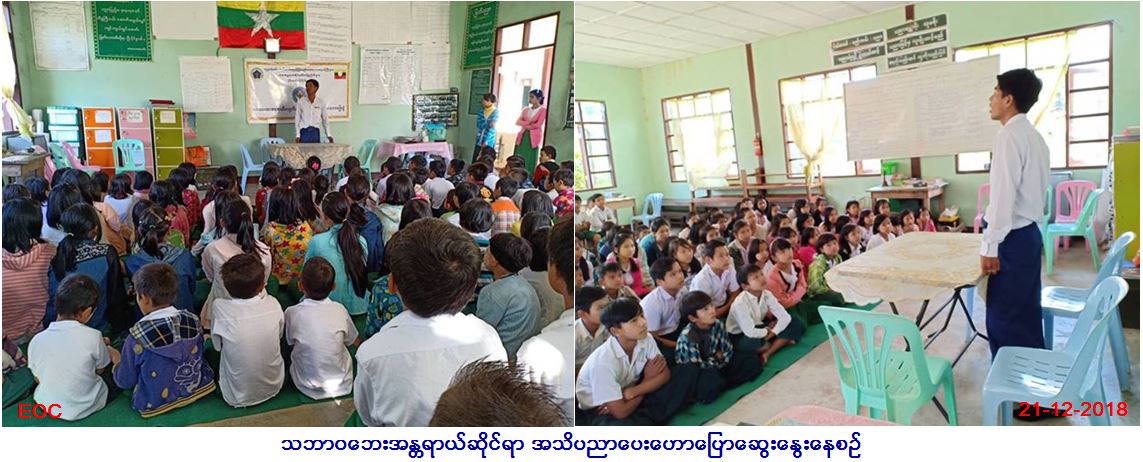 လူမှုဝန်ထမ်း၊ ကယ်ဆယ်ရေးနှင့် ပြန်လည်နေရာချထားရေးဝန်ကြီးဌာန၊ ဘေးအန္တရာယ်ဆိုင်ရာစီမံခန့့်ခွဲမှုဦးစီးဌာန၊ မိုင်းဆတ်ခရိုင်ဦးစီးမှူးရုံးမှ တာဝန်ရှိသူများသည် (၂၁-၁၂-၂၀၁၈) ရက်နေ့နံနက်တွင် မိုင်းခုတ်မြို့နယ်၊ မူလတန်းလွန်ကျောင်း (လွယ်ဆောင်)ကျောင်း၌ ကျောင်းသား/သူ (၁၅၀) ဦးအား သဘာဝဘေးအသိ ပညာပေးဟောပြောဆွေးနွေးခဲ့ကြောင်း သတင်းရရှိပါသည်။