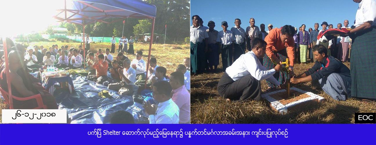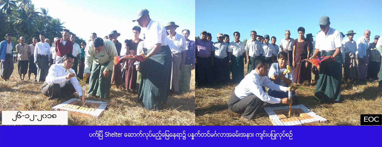 လူမှုဝန်ထမ်း၊ ကယ်ဆယ်ရေးနှင့် ပြန်လည်နေရာချထားရေးဝန်ကြီးဌာန၊ ဘေးအန္တရာယ်ဆိုင်ရာစီမံခန့်ခွဲမှုဦးစီးဌာန၊ ဖျာပုံခရိုင်ဦးစီးမှူးရုံးမှ တာဝန်ရှိသူများသည် (၂၆-၁၂-၂၀၁၈) ရက်နေ့၊ နံနက် (၀၉း၃၀) နာရီအချိန်တွင် ဖျာပုံမြို့နယ်၊ ဒေါ်ညိမ်းကျေးရွာအုပ်စု၊ ပက်ပြဲကျေးရွာ၌ ဇေယျာမြင့်မိုရ်ကုမ္ပဏီမှ တာဝန်ယူတည်ဆောက်မည်ဖြစ်သော Multi_Purpose Shelter အဆောက်အဦ ဆောက်လုပ်မည့်မြေနေရာ၌ ပန္နက်တင်မင်္ဂလာအခမ်းအနားကို ကျင်းပခဲ့ရာ တိုင်းဒေသကြီးလွှတ်တော်ကိုယ်စားလှယ် ဦးဘိုဘိုမင်းဇော်နှင့် မြို့နယ်တည်ဆောက်ရေးကော်မတီအဖွဲ့ဝင်များ၊ ကျေးရွာကော်မတီအဖွဲ့ဝင်များမှ ပန္နက်ရိုက်ခြင်းကို ဆောင်ရွက်ခဲ့ကြပါသည်။ ပက်ပြဲ Shelter သည် ဘက်စုံသုံး (Multi_Purpose) Shelter အမျိုးအစားဖြစ်ပြီး ဆောက်လုပ်ပြီးစီးပါက စာသင်ကျောင်းအဖြစ် အသုံးပြုနိုင်မည်ဖြစ်ပြီး ဘေးအန္တရာယ်ဖြစ်ပွားပါက ပက်ပြဲ၊ အေးကုန်းစသည့် အနီးတစ်ဝိုက််ရှိ ကျေးရွာများမှ ပြည်သူများ ခိုလှုံရာစခန်းအဖြစ် အသုံးပြုနိုင်မည်ဖြစ်ကြောင်း သိရှိရပါသည်။