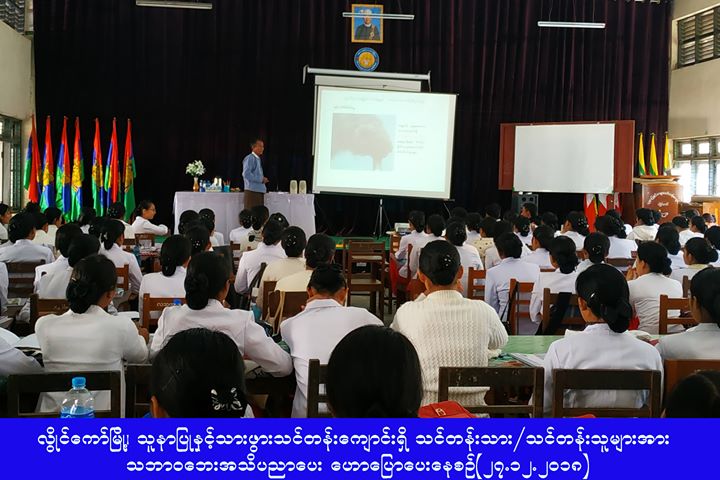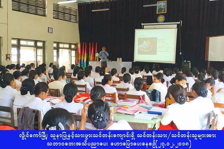 လူမှုဝန်ထမ်း၊ ကယ်ဆယ်ရေးနှင့် ပြန်လည်နေရာချထားရေးဝန်ကြီးဌာန၊ ဘေးအန္တရာယ်ဆိုင်ရာစီမံခန့်ခွဲမှုဦးစီးဌာန၊ ကယားပြည်နယ်ဦးစီးမှူးရုံးမှ တာဝန်ရှိသူများသည် (၂၇-၁၂-၂၀၁၈) ရက်နေ့၊ (၁၂း၀၀) နာရီအချိန်မှ (၁၃း၀၀) နာရီအထိ လွိုင်ကော်မြို့နယ်၊ သူနာပြုနှင့်သားဖွားသင်တန်းကျောင်းရှိ သင်တန်းသား၊ သင်တန်းသူ (၁၅၀) ဦးအား သဘာဝဘေးအသိပညာပေးဟောပြောပေးခဲ့ပြီး တက်ရောက်သူများအား လက်ကမ်းစာစောင်များဝေငှခဲ့ကြောင်း သိရှိရပါသည်။
