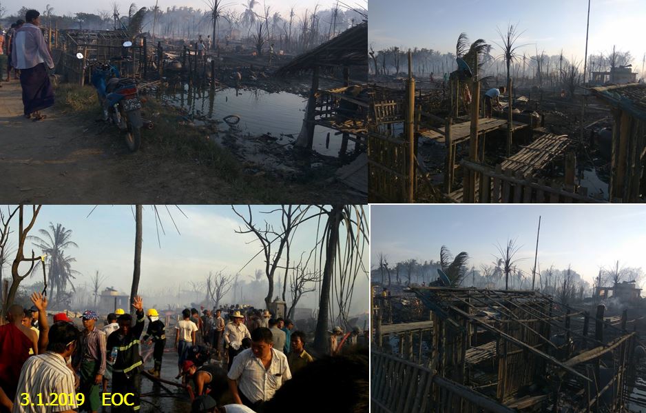 ၁။ ဧရာဝတီတိုင်းဒေသကြီး၊ ဖျာပုံမြို့နယ်၊ ချောင်းဝကျေးရွာတွင် (၃-၁-၂၀၁၉) ရက်နေ့၊ မွန်းလွဲ (၂) နာရီ မိနစ် (၂၀) အချိန်ခန့်က နေအိမ်မီးဖို မီးကြွင်းမီးကျန်မှတဆင့် မီးလောင်ကျွမ်းမှု ဖြစ်ပွားခဲ့ရာ နေအိမ် (၁၆၇) လုံး မီးလောင်ကျွမ်းခဲ့ပြီး လူဦးရေ (၆၀၀) ဦးခန့် မီးဘေးသင့်ခဲ့ကြောင်း၊ လူသေဆုံး ထိခိုက်မှုမရှိကြောင်း ကနဦး သိရှိရပါသည်။