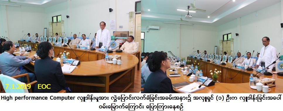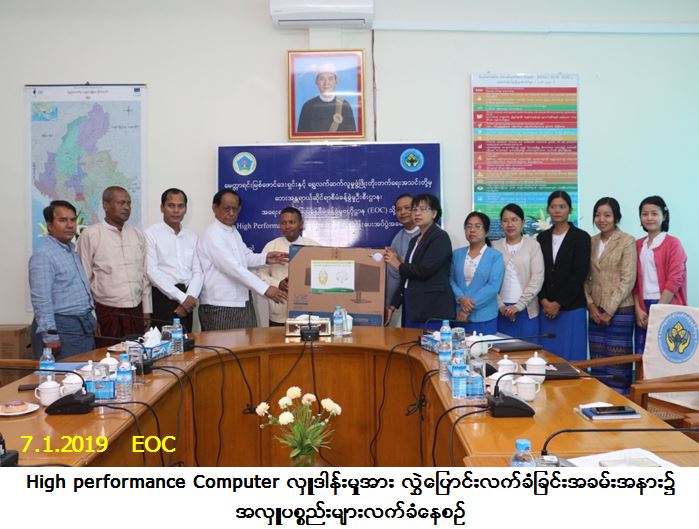 လူမှုဝန်ထမ်း၊ ကယ်ဆယ်ရေးနှင့် ပြန်လည်နေရာချထားရေးဝန်ကြီးဌာန၊ ဘေးအန္တရာယ်ဆိုင်ရာစီမံခန့်ခွဲမှုဦးစီးဌာန၊ အရေးပေါ်အခြေအနေစီမံခန့်ခွဲမှုဗဟိုဌာန၊ အစည်းဝေးခန်းမ၌ (၇-၁-၂၀၁၉) ရက်နေ့၊ နေ့လယ် (၁၃း၀၀) နာရီအချိန်တွင် မေတ္တာရင်းမြစ်ဖောင်ဒေးရှင်းနှင့် ရွှေလက်ဆက်လူမှုဖွံ့ဖြိုးတိုးတက်ရေးအသင်းတို့မှ ဘေးအန္တရာယ် ဆိုင်ရာစီမံခန့်ခွဲမှုဦးစီးဌာန၊ အရေးပေါ်အခြေအနေစီမံခန့်ခွဲမှုဗဟိုဌာန (EOC) တွင် အသုံးပြုရန် စွမ်းဆောင် ရည်မြင့် ကွန်ပျူတာ (High performance Computer) (၁) စုံလှူဒါန်းမှုအား လွှဲပြောင်းလက်ခံခြင်း အခမ်းအနား ကျင်းပပြုလုပ်ခဲ့ရာ ဘေးအန္တရာယ်ဆိုင်ရာစီမံခန့်ခွဲမှုဦးစီးဌာန၊ ဒုတိယညွှန်ကြားရေးမှူးချုပ်၊ ညွှန်ကြားရေးမှူးများ၊ ဒုတိယညွှန်ကြားရေးမှူးများနှင့် အလှူရှင်ဧည့်သည့်တော်များ တက်ရောက်ခဲ့ပြီး ဦးစီးဌာန၏လုပ်ငန်းများတွင် အကျိုးရှိစွာအသုံးချနိုင်မည့် စွမ်းဆောင်ရည်မြင့် ကွန်ပျူတာ (High performance Computer) လှူဒါန်းခြင်း၊ အလှူပစ္စည်းလက်ခံခြင်းနှင့် ဂုဏ်ပြုမှတ်တမ်းလွှာ ပြန်လည်ပေးအပ်ခြင်းတို့ ဆောင်ရွက်ခဲ့ပါကြောင်း သတင်းရရှိပါသည်။